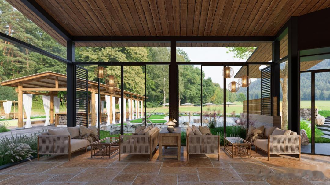 室内是温暖的原木、柔软的织物与智慧的现代设施;室外,是无边的自然剧场。生态停车场与卫生间,这些细节处的谦卑,诉说着对土地最深的敬意。