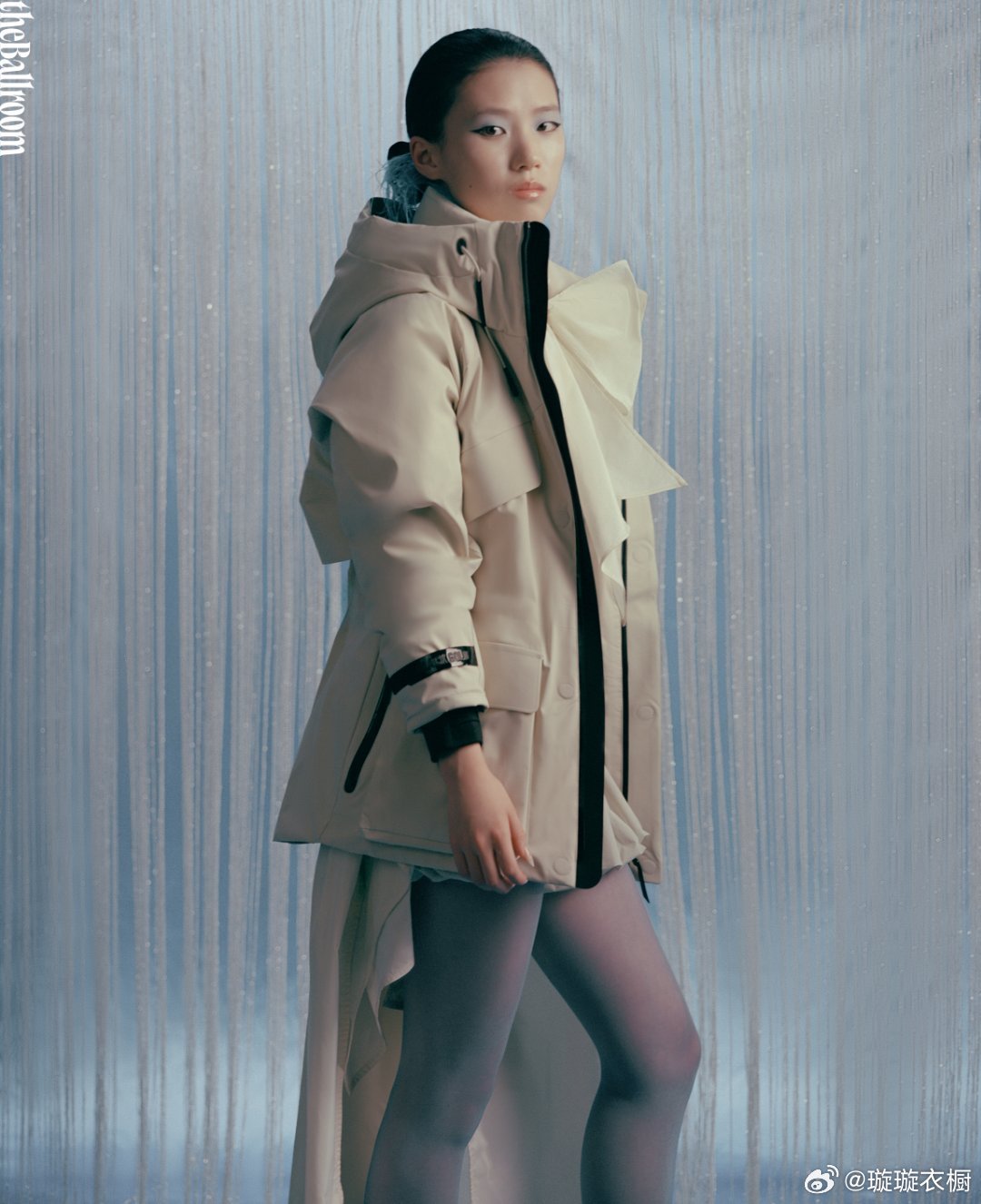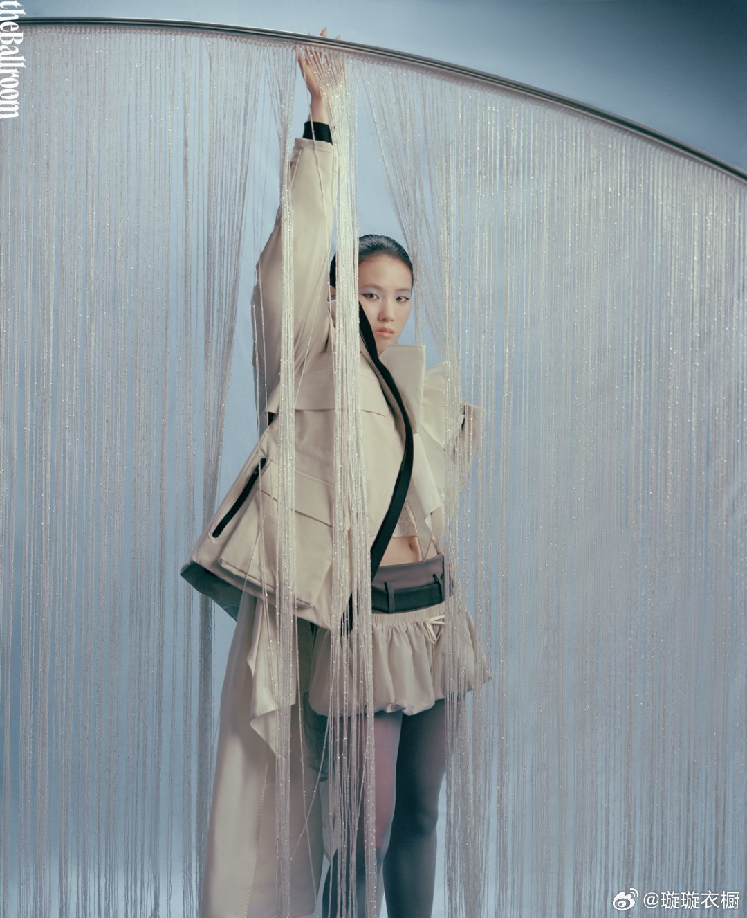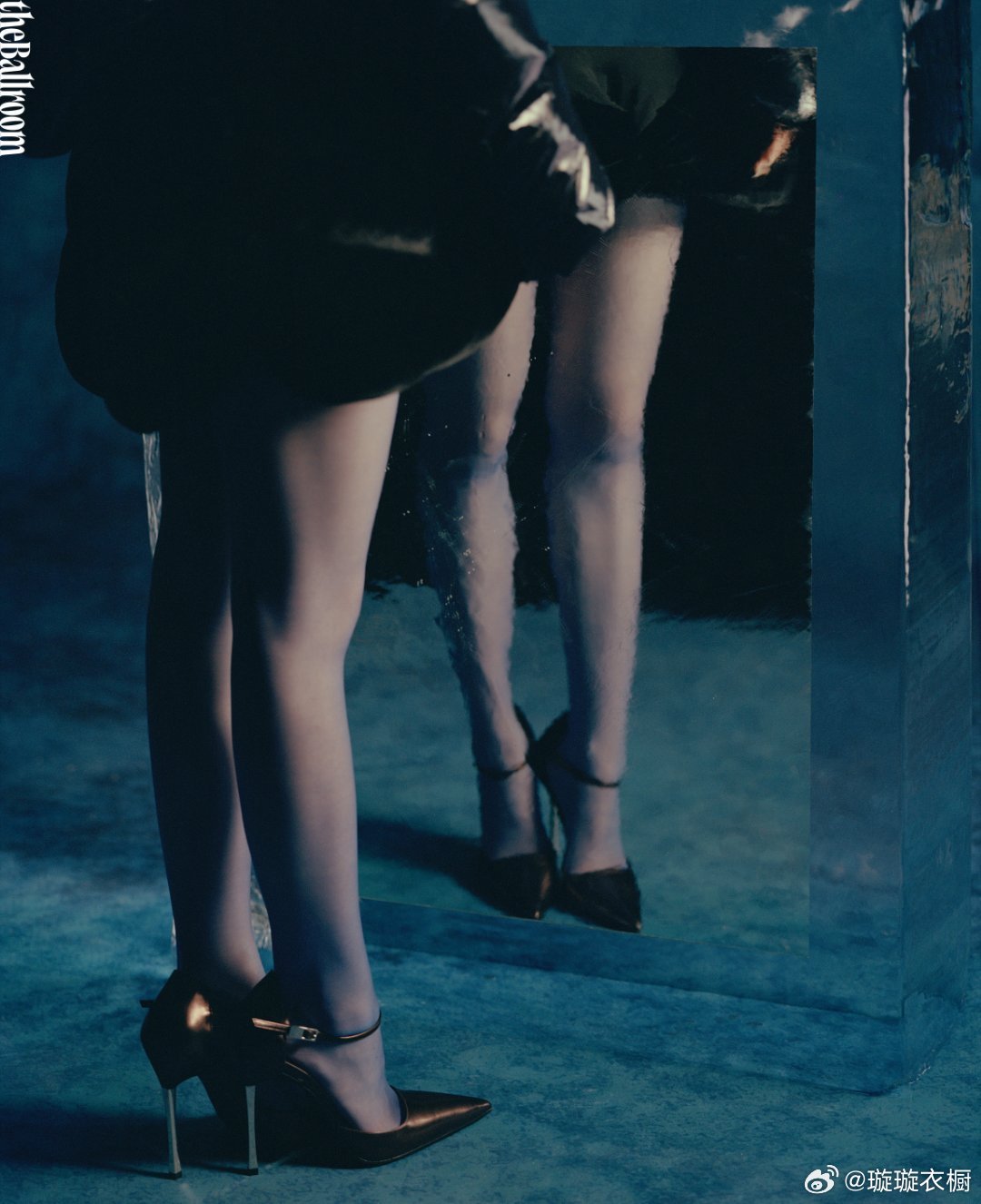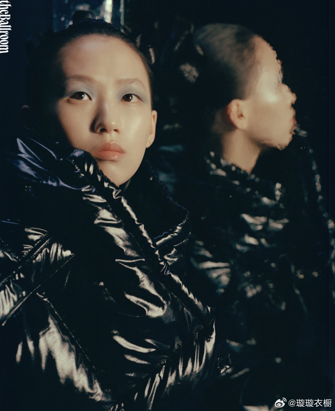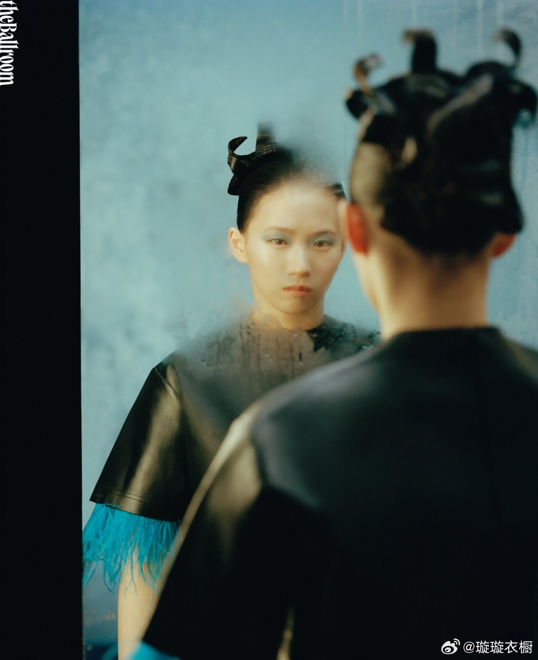 陈芋汐镜面映出双生魅影,蓝羽轻颤似蝶翼停驻肩头 圆点画布上,背影切割出几何诗行,