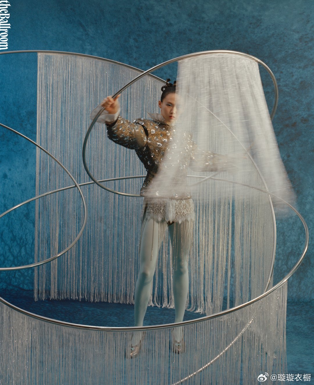陈芋汐镜面映出双生魅影,蓝羽轻颤似蝶翼停驻肩头 圆点画布上,背影切割出几何诗行,每一步都是解构与重生的圆舞曲。陈芋汐的蓝色叙事