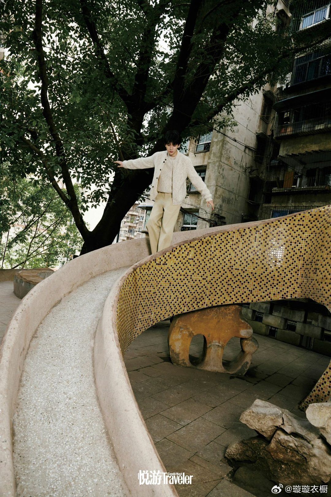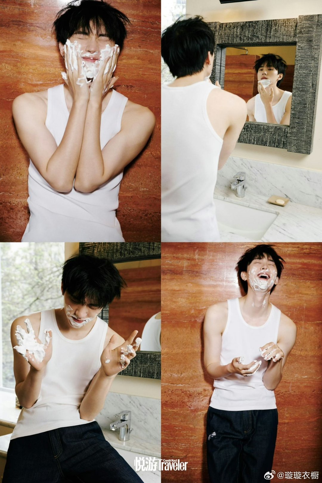 周翊然青瓦木桌旁,竹编帽檐漏下细碎光斑,果盘里盛着山城的烟火气,黄包车窗外,帽檐轻垂藏起星眸,风把归途故事吹成诗行泡沫在指缝跳圆舞曲,镜中少年笑出月牙,时光在皂香里打了个盹周翊然成名后首回重庆拍封面