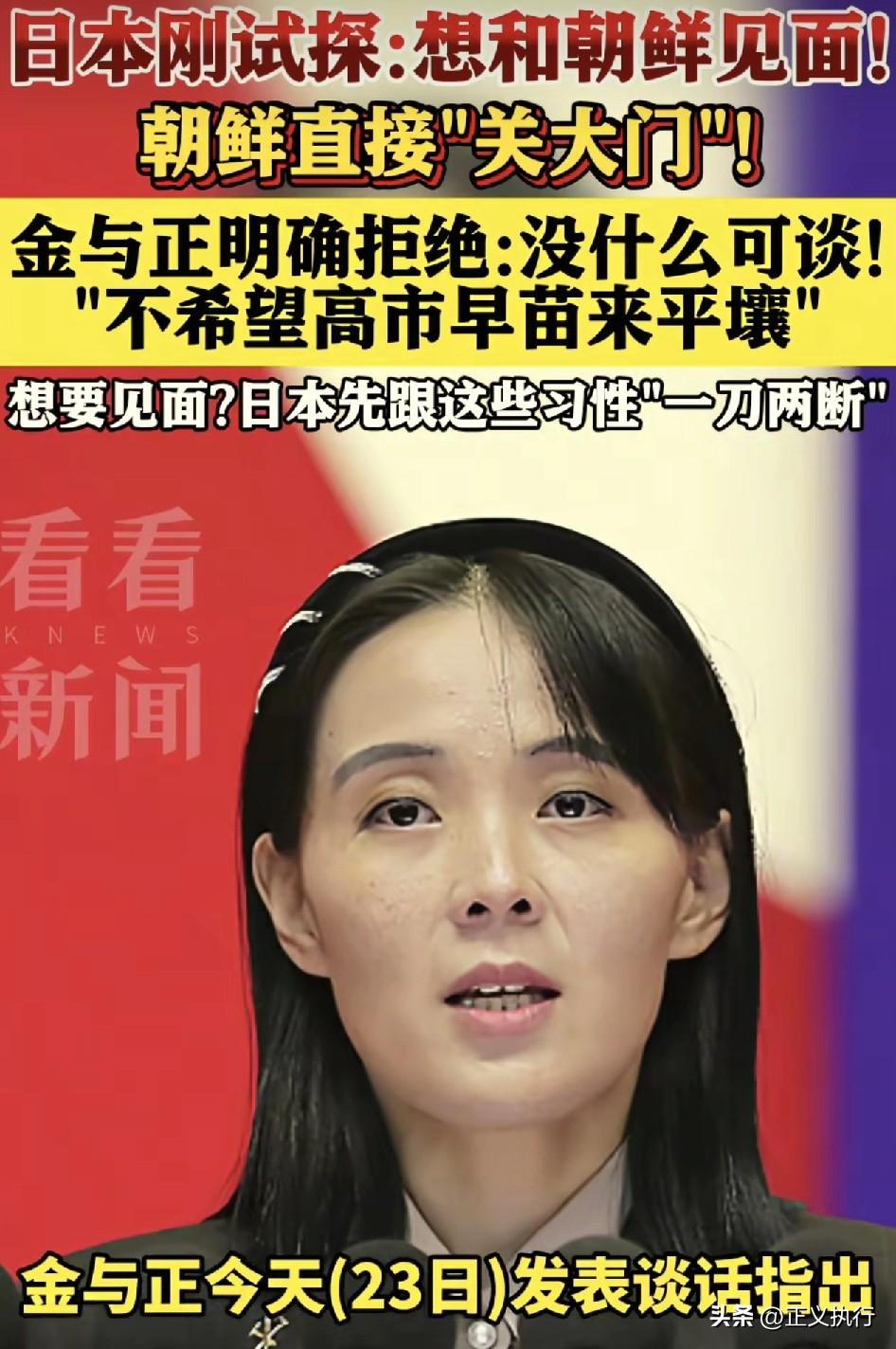 最新消息! 朝鲜对日本的霸气回复,值得点个赞! 根据逐浪新闻报道,日本首相对实现朝日首脑会谈表示强烈意愿。但是朝鲜方面金与正给出答复是“两国首脑要见面,日方首先必须与不合时宜的惯常行为和习性一刀两断。如果日本继续纠缠朝方不承认的单方面议题,朝鲜领导层就不会与之会面。而且现在的日本正朝着与之相反的方向越走越远,个人不希望看到日本首相访问平壤。” 突然感觉,金公主不仅漂亮还很有骨气和血性。爱恨分明的性格,不拐弯抹角,有话直说,真的很值得人们的尊重。朝鲜国土虽然小,但人却是很有骨气,分清敌我,立场坚定不忘本。