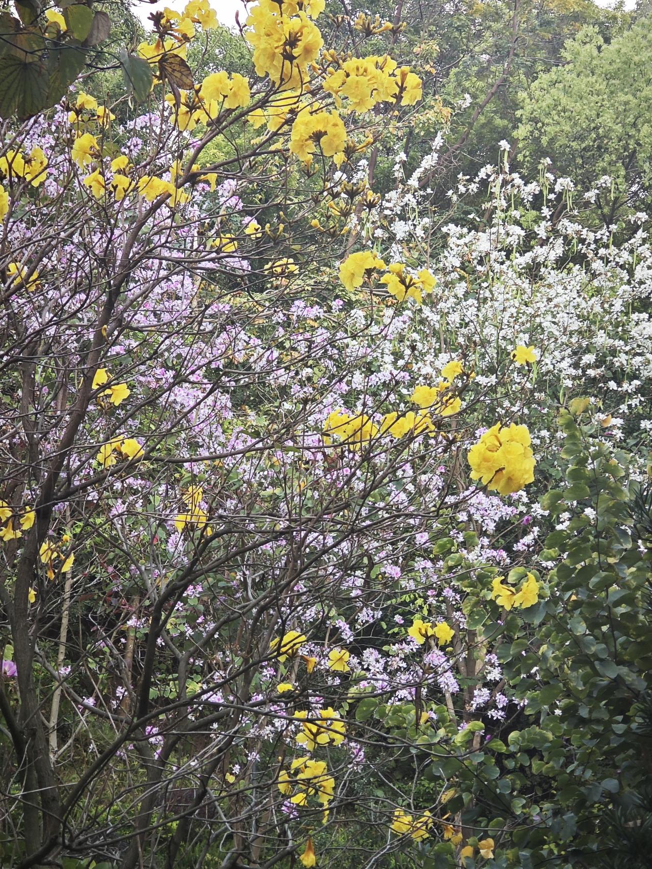 到深圳来旅游,到哪里去赏花?这段时间我走遍了深圳南山福田罗湖的很多街巷,感受了一座花城的魅力。到深圳来旅游,去哪儿赏花,这几个区我推荐几个地点。 去南山区k11商场附近欣赏红花风铃,一边是蔚蓝的大海一边是盛开的鲜花,真的很漂亮。当然不能错过人才公园,红花风铃和摩天高楼完美结合的程序。 去南山区大新地铁站欣赏黄花枫林,走出地铁站,就能把你惊艳。福田区市民中心南面也有黄花枫林。 去福田区笔架山公园欣赏炮仗花,深圳最美廊桥炮仗花开的时候,真的很壮观。 去福田区园博园欣赏那一株网红簕杜鹃,真的相当壮观,抖音上经常能刷到。 去南山区华侨城欣赏著名的网红簕杜鹃小道,香山中路,最容易拍出大片。 去深圳深南大道欣赏中国城市绿化的顶尖之作,尤其是竹子林到车公庙一段,非常漂亮。旅行 深圳春天赏花 深圳公园花展