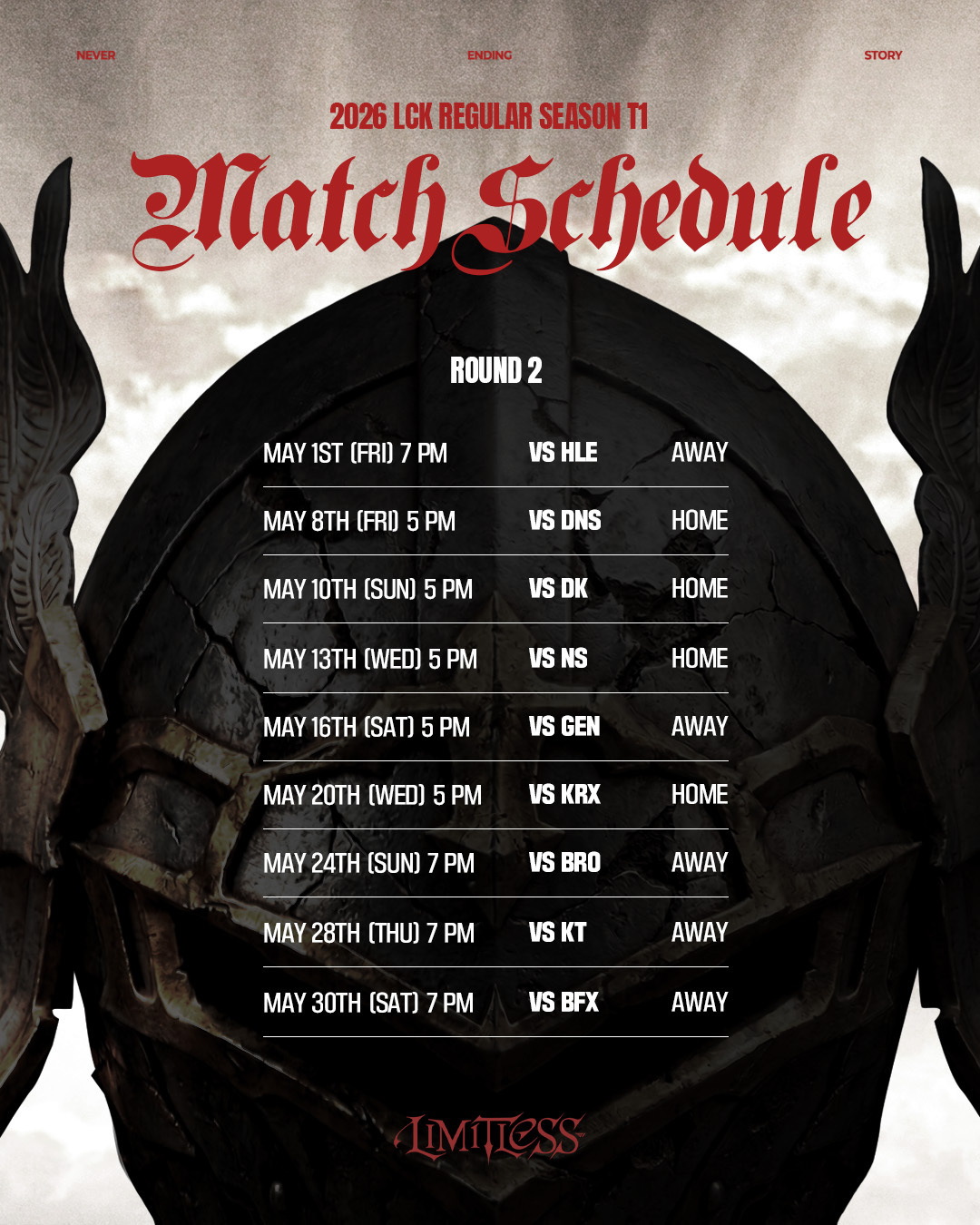 虎扑03月25日讯今日T1分享LCK常规赛T1赛程表,具体如图所示: