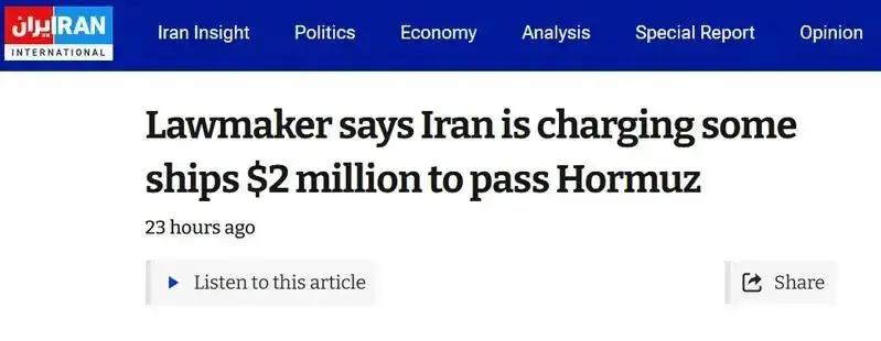 伊朗开始靠打仗赚钱了,想过霍尔姆斯海峡,200万美元一艘船过路费,据说有九个国家接受了,而是通过外交渠道付费,不通过美国控制的swift。 就在3月22日,伊朗议员阿拉丁·博鲁杰尔迪在国家广播里公开承认,已经开始收这笔“过路费”了。他说得很直白:“战争是有代价的,所以必须收过路费。” 这话听起来好像还挺有道理,毕竟现在中东打得这么凶,伊朗说自己要维护海峡安全,投入了人力物力,收点钱好像也说得过去。但明眼人都知道,这哪是什么安全维护费,分明就是趁着乱局在收“保护费”。 不过,还真有船愿意掏这个钱。根据《劳氏日报》的报道,上周已经有一家私人油轮运营商实打实地交了200万美元,给自己家的油轮买了个平安通行证。这艘船叫“布卢明戴尔号”,为了能安全通过这片危险海域,毫不犹豫地掏了这笔巨款。 而且不止这一艘,目前至少有9艘船尝试走这条“付费通道”,这些船来自印度、巴基斯坦、希腊等国家,有油轮也有散货船。 伊朗这操作挺聪明的。他们没像以前那样直接封锁海峡,因为那样会得罪全世界。 Instead,他们搞了个区别对待:只对友好国家或者非敌对国家的船开放这条通道,比如中国、印度、巴基斯坦、马来西亚这些国家的船可以申请。 而美国、以色列还有他们盟友的船,对不起,给钱也不让过。这等于在政治上划了条线,把朋友和敌人分得清清楚楚。 因为伊朗一直被美国制裁,用美元、欧元这些正常渠道根本行不通。那这200万美元怎么交呢?伊朗想了个办法——通过外交渠道。也就是说,船东不能自己直接去找伊朗交钱,得由自己国家的政府出面,通过外交途径跟伊朗沟通协调,相当于政府给自家的商船做担保。 这样一来,这笔生意就披上了一层政府间协议的外衣,看起来正规多了。而且支付的时候也不用美元,可以用人民币、加密货币,甚至实物贸易来结算,完美绕开了美国控制的SWIFT系统。美国那边干瞪眼,一点办法都没有。 伊朗这么做可不是临时起意,他们是有长远打算的。现在伊朗议会正在紧急审议一个叫《波斯湾与霍尔木兹海峡安全捐税法》的提案,准备把收费这事儿合法化、常态化。按照这个法案,以后每桶经过海峡的原油都要交1到3美元的“安全税”。 一天2000万桶,就算每桶只收1美元,一天就是2000万美元,一年下来超过70亿美元!这简直就是一座挖不完的金山。伊朗最高领袖的顾问穆赫贝尔说得更直白:战争结束后,霍尔木兹海峡将建立新的秩序。意思就是,这收费权他们要长期握在手里,当成反制西方制裁、赚取外汇的王牌。 当然,天下没有免费的午餐,伊朗收这笔钱,全世界都得跟着买单。消息一出来,国际油价立马就涨了,布伦特原油一度冲到每桶118美元。市场担心的不只是那200万美元的个案,而是万一那“每桶1-3美元”的税真成了法律,就等于在全球石油成本里永久性地加了个“伊朗税”。这钱最后都会转嫁到消费者头上,加油贵了,电费涨了,什么都贵了。 就算你交了200万美元过路费,也不代表绝对安全。霍尔木兹海峡现在还是个高风险战区,保险公司把这里的“战争风险保费”提到了惊人的高度——达到整艘船价值的5%到10%。一艘价值1亿美元的巨型油轮,光保费就可能要交500万到1000万美元。 这么算下来,现在从波斯湾运一船石油出去,总成本可能是平时的三倍还多。这些多出来的运费、保费,最后都会加到商品价格里,不管是中国的家电、欧洲的奢侈品,还是南美的水果,都会变得更贵。 按照国际法,霍尔木兹海峡是用于国际航行的海峡,各国船只本来享有“过境通行”的权利,不用交任何费用。但伊朗现在这么一搞,等于把国际航道变成了自家的收费站。 对于那些严重依赖中东石油和海上贸易的国家,像中国、日本、韩国、印度,还有欧洲各国,这绝对是个长期的战略挑战。 所以说,伊朗这招确实高明。一边打仗,一边还能靠地理位置赚钱,把危机变成了商机。但这么做的后果也很严重,不仅推高了全球能源价格和通胀压力,还可能让伊朗从“制裁受害者”变成“规则破坏者”,失去国际社会的同情和支持。 不过眼下看来,伊朗是铁了心要把这条路走到底,毕竟每天2000万美元的潜在收入,这诱惑实在太大了。
