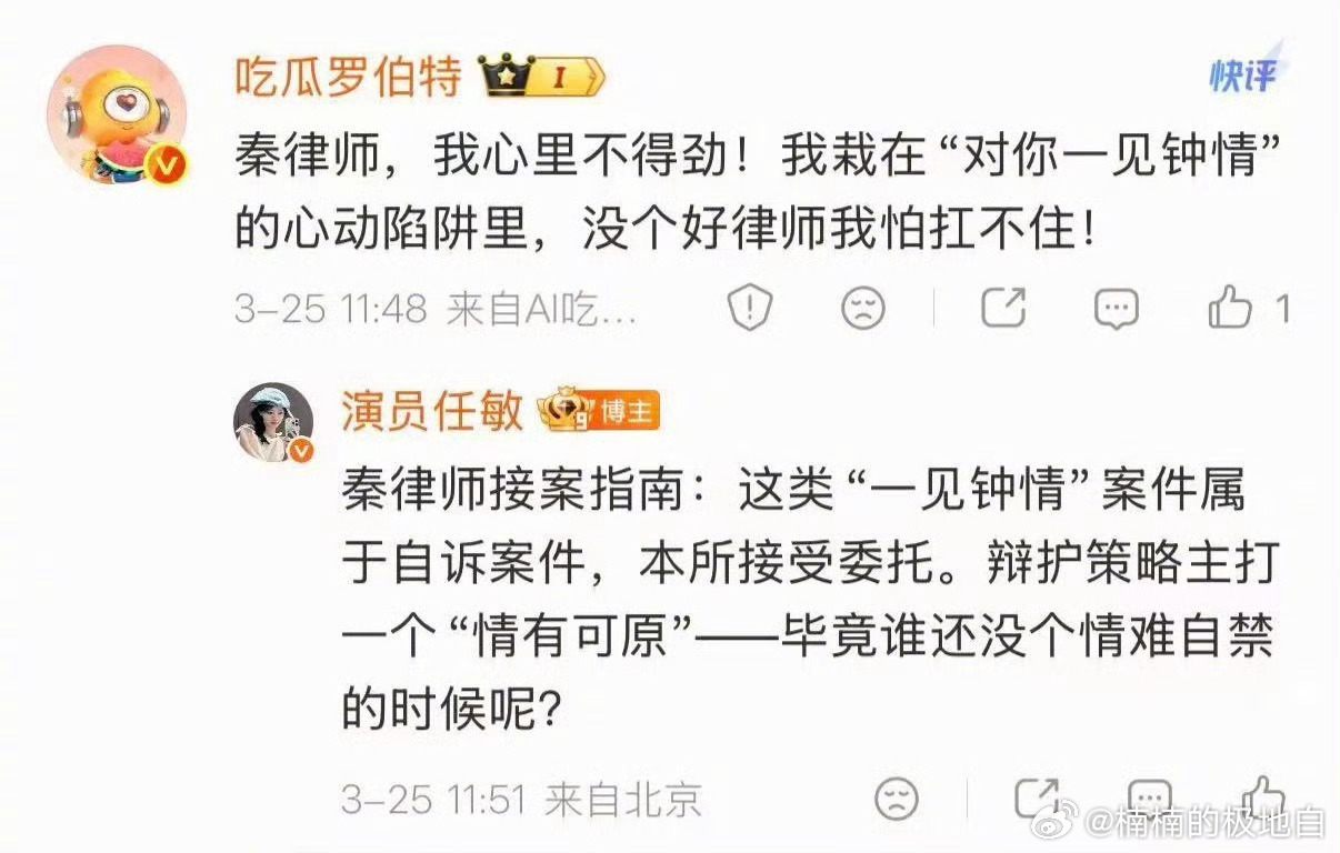 任敏回复罗伯特 任敏新剧宣发博成互动现场!罗伯特“诉讼”心动,任敏以秦睿律师身份接梗,温柔回应甜到心颤💖