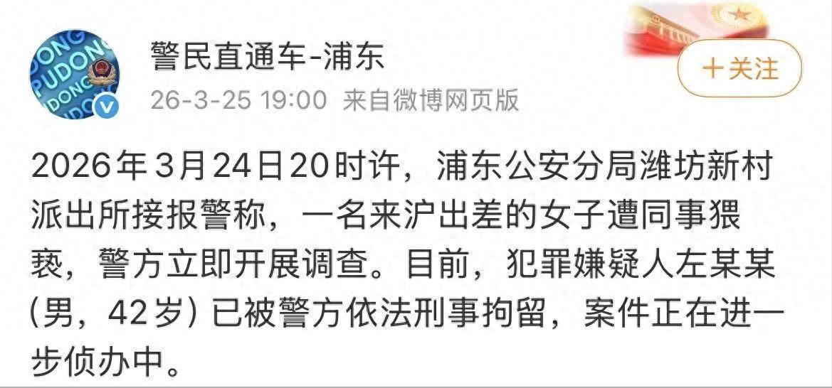券商所长出差猥亵下属事件:精英面具下的权力霸凌,不该只靠受害者拼死反抗 上海假日酒店的深夜拉扯,一句 “只要打一针就好”,把券商研究所所长的精英伪装彻底卸下。这场公务出差里的恶性侵害,远比纸面信息更触目惊心。 涉事男子左某某,42 岁,博士学历,案发时任信达证券研究所所长、能源首席分析师。十余年行业深耕,让他成了券商研究领域手握实权的核心人物。 受害人唐某,2023 年应届生毕业即入职信达证券,是左前明的直属下属。入职不满三年的她,在绝对的上下级权力差面前,是毫无议价权的职场新人。 这场噩梦,始于一场看似正常的公务安排。2026 年 3 月中旬,左某某以上海参会为由,直接通知唐某陪同出差,行程定了整整一周。 3 月 24 日晚 8 时许,饭局结束后的返程车内,侵害就已悄然开始。左某某对同行的女下属实施猥亵,这场恶意,从密闭的车厢,一路蔓延到了入住的酒店。 抵达酒店后,左某某的侵害非但没有收敛,反而持续升级。他强行拉扯唐某试图带入自己房间,甚至追至停车场,要把奋力逃跑的她塞进出租车。 面对持续的不法侵害,唐某全程奋力反抗、大声呼救。是酒店保安及时发现异常出手制止,才帮她暂时挣脱控制,为这场绝境反抗撕开了一道口子。 脱身之后的唐某,在火锅店店员的协助下完成了报警准备。3 月 25 日凌晨 1 时 07 分,她在涉事酒店正式报警,完整陈述了自己的全部遭遇。 民警接警后迅速赶赴现场,将左某某带回派出所调查。几乎同时,唐某在信达证券工作群发布实名举报内容,完整还原了自己的受害经过。 举报内容迅速扩散,全网舆论瞬间发酵。媒体跟进采访时,信达证券董秘电话无人接听,客服称不清楚情况,涉事酒店也未披露事发细节。 3 月 25 日白天,信达证券相关负责人向记者作出初步回应,称已暂停左前明一切工作,启动内部核查,全力配合公安机关调查。 当日晚间,上海浦东警方发布官方警情通报,明确左某某已被依法刑事拘留,案件正在进一步侦办中。信达证券也同步发布正式回应,表态不回避、不包庇。 事件曝光后最让人唏嘘的,是唐某事前对左前明的认知。她一直以为,这位上级是 “德高望重、为人正直、爱惜下属的好领导”。 这份信任的崩塌,不止是一个年轻职场人的心理重创,更戳破了很多职场环境里,上下级关系的虚假滤镜。所谓的前辈提携,可能藏着不怀好意的算计。 这起事件的核心,从来不是什么酒后失德,而是典型的权力型侵害。加害者利用职级、资源和话语权,对弱势下属实施霸凌,把公务出行变成了作恶的场合。 金融圈素来裹着光鲜的外壳,高学历、高收入、行业光环,却没能约束住手握权力的作恶者。职场反性侵的防线,不能只靠受害者的拼死反抗。 唐某的实名举报,不止是为自己维权。她公开发声的核心目的,是避免更多职场女性遭遇同类侵害。这份勇气,不该只换来一次个案的追责。 目前案件还在进一步侦办中,法律终将给受害者一个公道。但我们更该看清,职场安全的底线,不能只靠法律事后兜底,更要靠制度堵住权力作恶的口子。