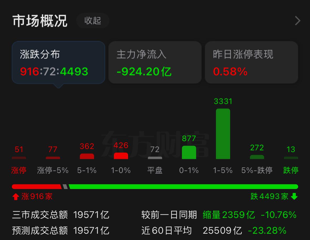 好家伙,市场又回到超4600只个股下跌的冰点,刚反弹两天就戛然而止,朋友们先别慌,我们来看盘面,上证指数今日下跌1.09%,盘中回踩昨日缺口位置,最终收在缺口支撑上方,这其实就是我们早盘提到的第三种预期内回踩走势,只是这般极端的普跌局面实在让人难以承受,这和当下量能息息相关,今日两市成交量大幅缩量2300多亿,收盘跌破两万亿仅1.94万亿,创下3月以来最低水平,同时场内量化资金的成交占比显著提升,一旦市场出现利空信号就会引发批量卖出,进而造成个股大面积回落,缩量环境下涨时集体冲高、跌时全线杀跌已成常态。 这种极端涨跌加速并不能反映市场真实强弱,今天下跌的核心原因并非外围局势的突发不确定性,更多是场内因素主导,跌幅居前的是保险板块大跌超4%,证券板块也下跌近2%,两大金融权重单边走弱,作为此前的护盘主力如今却成为领跌力量,不必过度猜测背后原因,大概率是现阶段主力控盘的手段,毕竟此前两日的上涨也有主力推动,只要行情仍在主力掌控范围内,整体就不会出现极端走弱,希望大家短期内多一份耐心,缩量市场里多看少动耐心等待,不要被市场反复震荡来回收割。