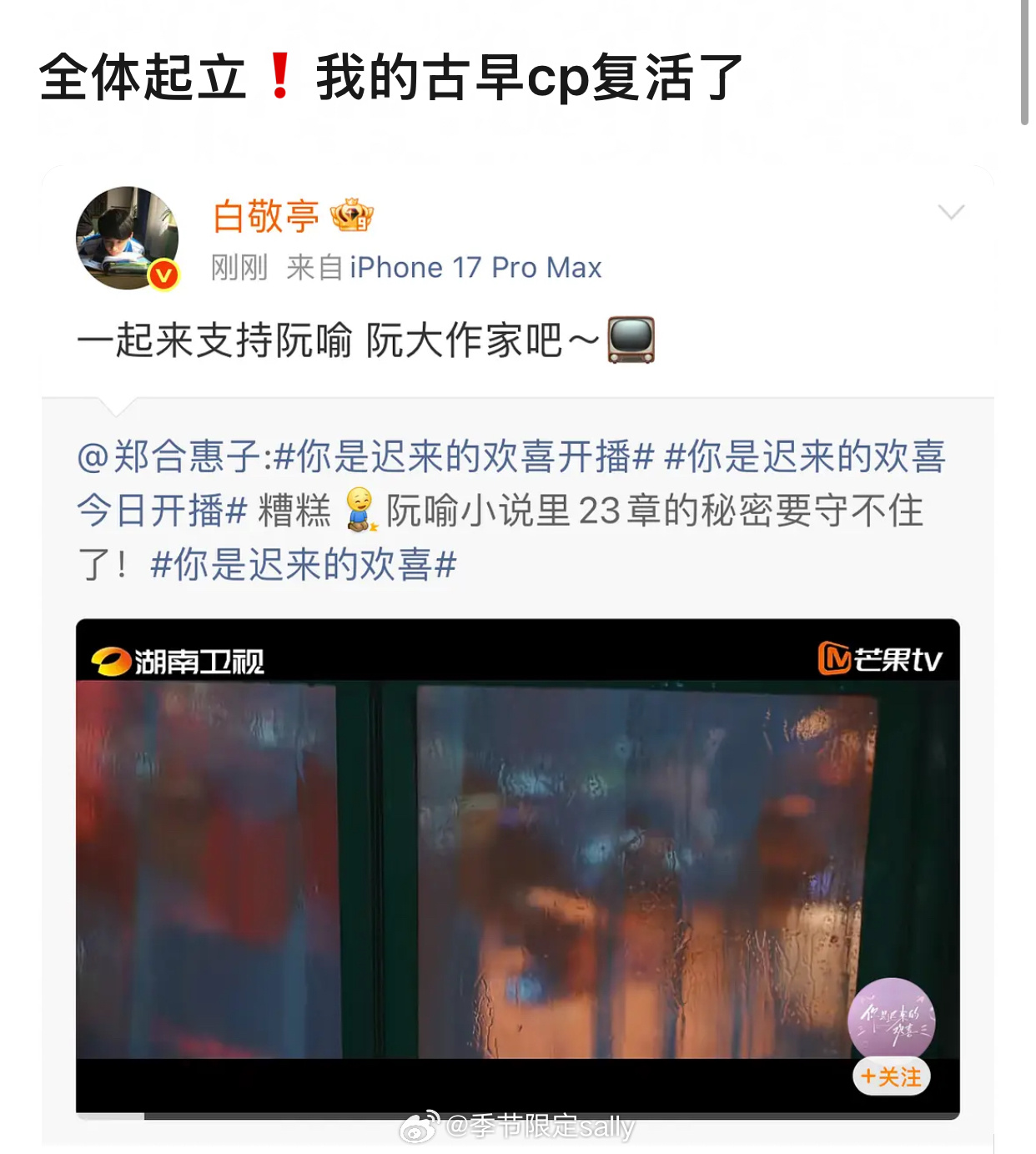 白敬亭宣传郑合惠子新剧你是迟来的欢喜,真古早cp复活