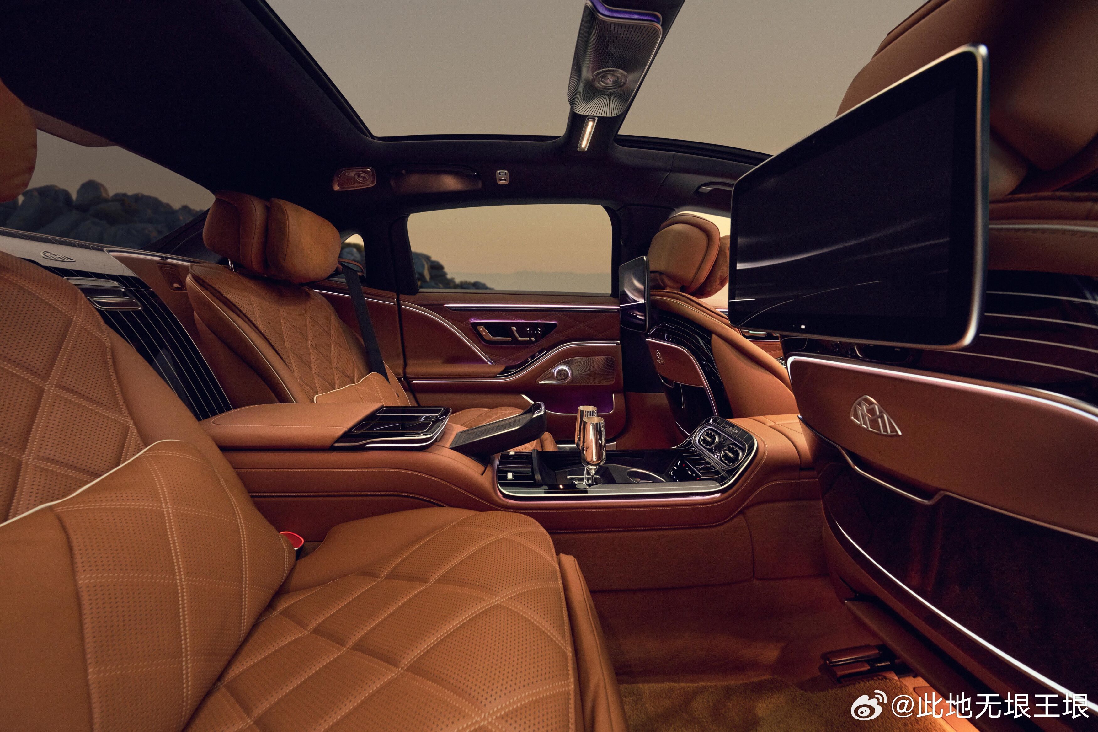 大V聊车 日前,奔驰发布了2027款迈巴赫S级轿车。2027款迈巴赫S级车头部的前格栅大了20%,迈巴赫文字标志有了背光照明,前格栅也增加环绕背光,车头可选发光立标,与前格栅相呼应。车头灯腔内加入了玫瑰金色装饰条,C柱迈巴赫徽标也有背光。2027款迈巴赫S级车身涂装还增加了一种全新的航海蓝金属漆的双拼车色。外观上还增加了两款新的多辐锻造车轮,一款是21英寸的MANUFAKTUR车轮,采用精致的金色电镀,另一款是20英寸的镀铬锻造车轮。新车轮轮心标配了悬浮车标。车内饰增加新的棕色皮质面料,以菱形绗缝工艺缝制,白色滚边收口。后排标配两个13.1英寸后娱乐屏,屏幕配有重新设计的遥控器,可对空调、遮阳、娱乐进行控制,屏幕集成摄像头可进行视频会议。后排中央通道后部设有10升冷藏箱,配备镀银的Robbe&Berking香槟高脚杯,这已成为迈巴赫的传统配置。车内增加主动环境照明系统,配备199个LED和64种颜色,包括迈巴赫独有的玫瑰金色和紫水晶色。新的开孔橡木和人字形琥珀木内饰使车内更加美观。动力系统有两种选择,S580使用改进的M177 EVO双涡轮增压4.0升V8发动机,最大功率530马力、最大扭矩750牛米;S680采用6.0升双涡轮增压V12发动机,最大功率621马力、最大转矩850 ,两款车都匹配9挡自动变速箱配合4MATIC全轮驱动,0-100公里/小时加速时间4.3秒。