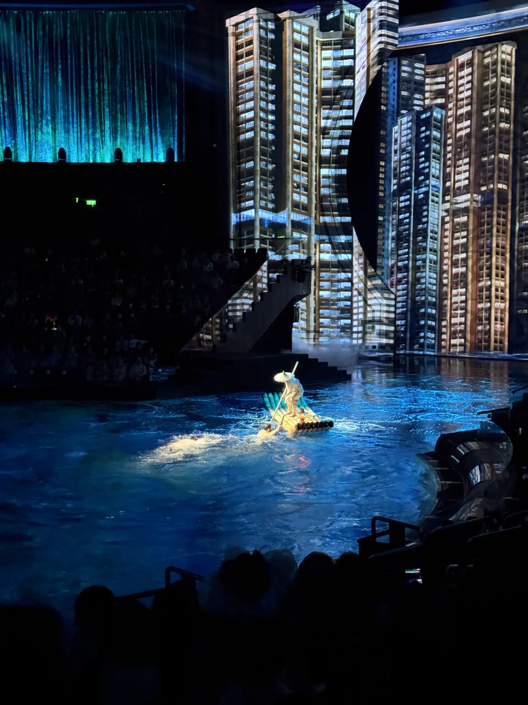 《水舞间》也不要错过呀,斥资超20亿打造的水上汇演,270度环形剧院设计,无论处于哪个区域,都能很好观赏到舞台上的表演,当舞台在眼前化作深不见底的汪洋,高空杂技,剧情演绎,舞蹈搏击一一呈现,每一幕效果都好赞,让人连连赞叹,只有亲临现场才能感受到的视觉盛宴~