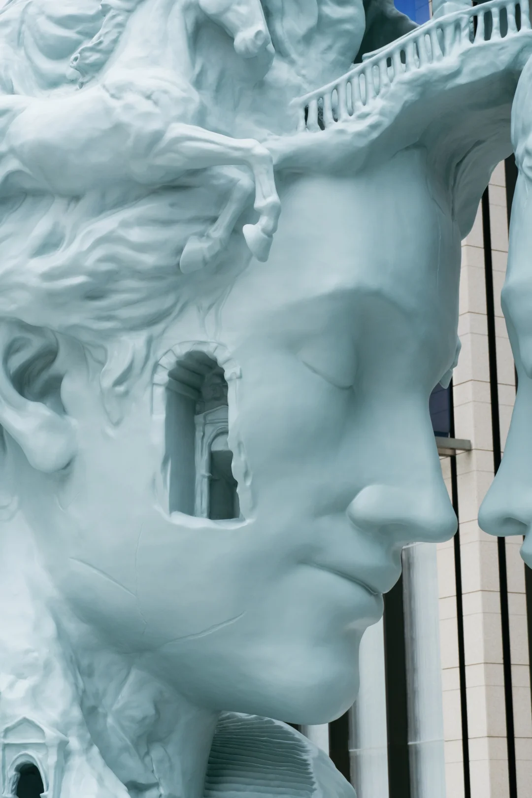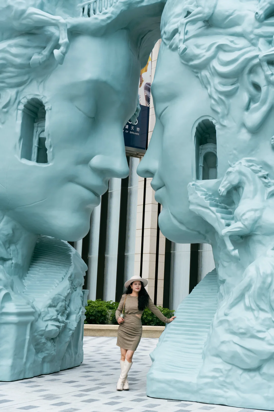 两座相对而立的巨大头像就像门廊一般,也是思维意识的容器,当目光穿过它们,交错的阶梯在不可能的结构中盘旋,仿佛走进了一座记忆的迷宫;而穿过雕塑时,我感受到的不再是内外空间的转换,而是记忆与想象同时框定的瞬间🤔在澳门,“梦”也是可以如此具像化滴👏