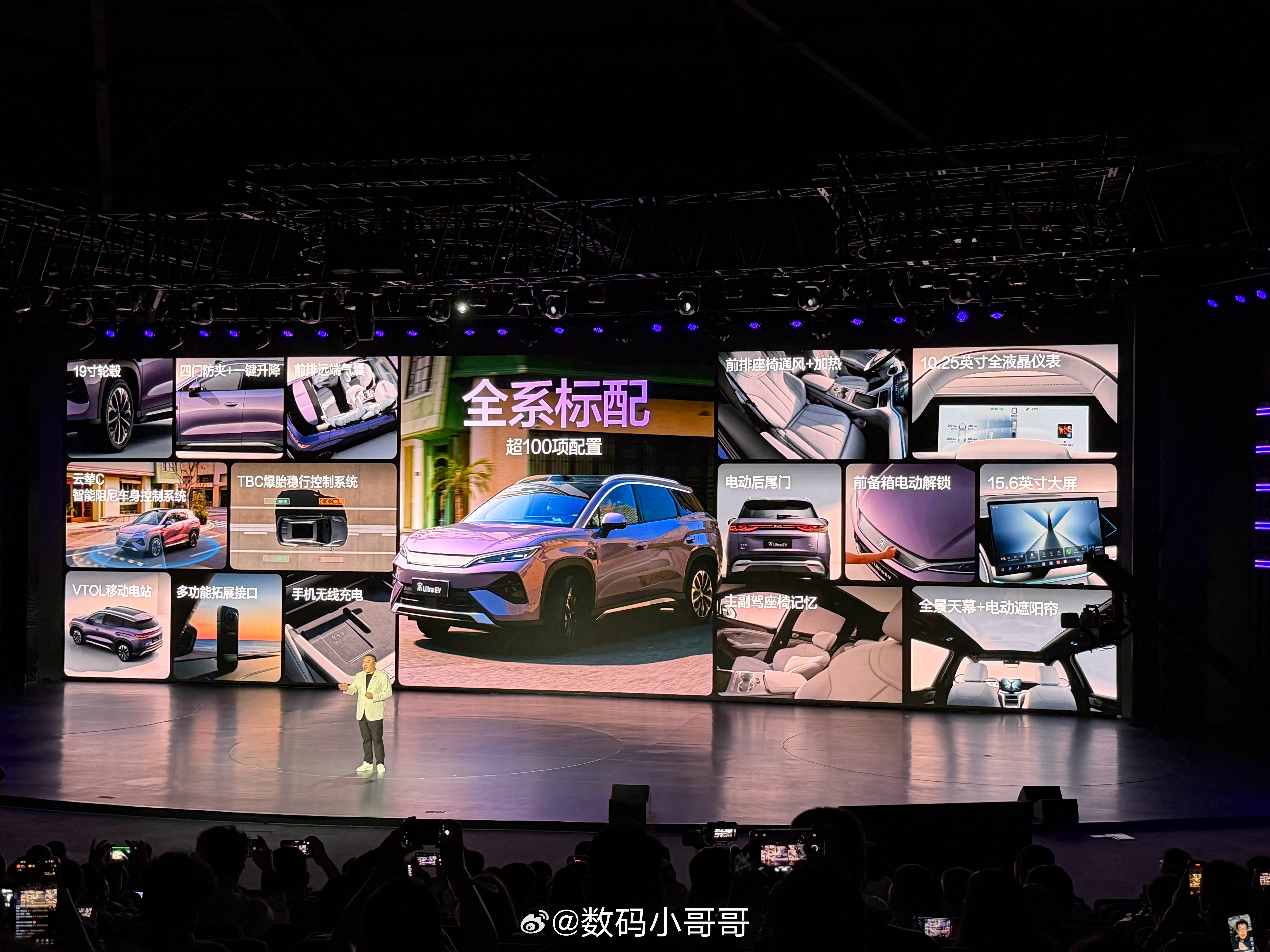 宋Ultra EV 在配置这块非常有诚意,带了超100项标配,全景天幕、电动尾门、15.6寸大屏、智能冷暖箱一应俱全,入门即满配。除此之外,全系标配云辇-C智能阻尼悬架、TBC高速爆胎稳行系统,高速过弯稳、爆胎也能稳稳控车,新手也能安心开。可选装激光雷达智驾系统,城区领航、自动泊车、窄路调头都能轻松搞定。全车7气囊、超高强度钢车身,搭配哨兵模式,安全拉满。