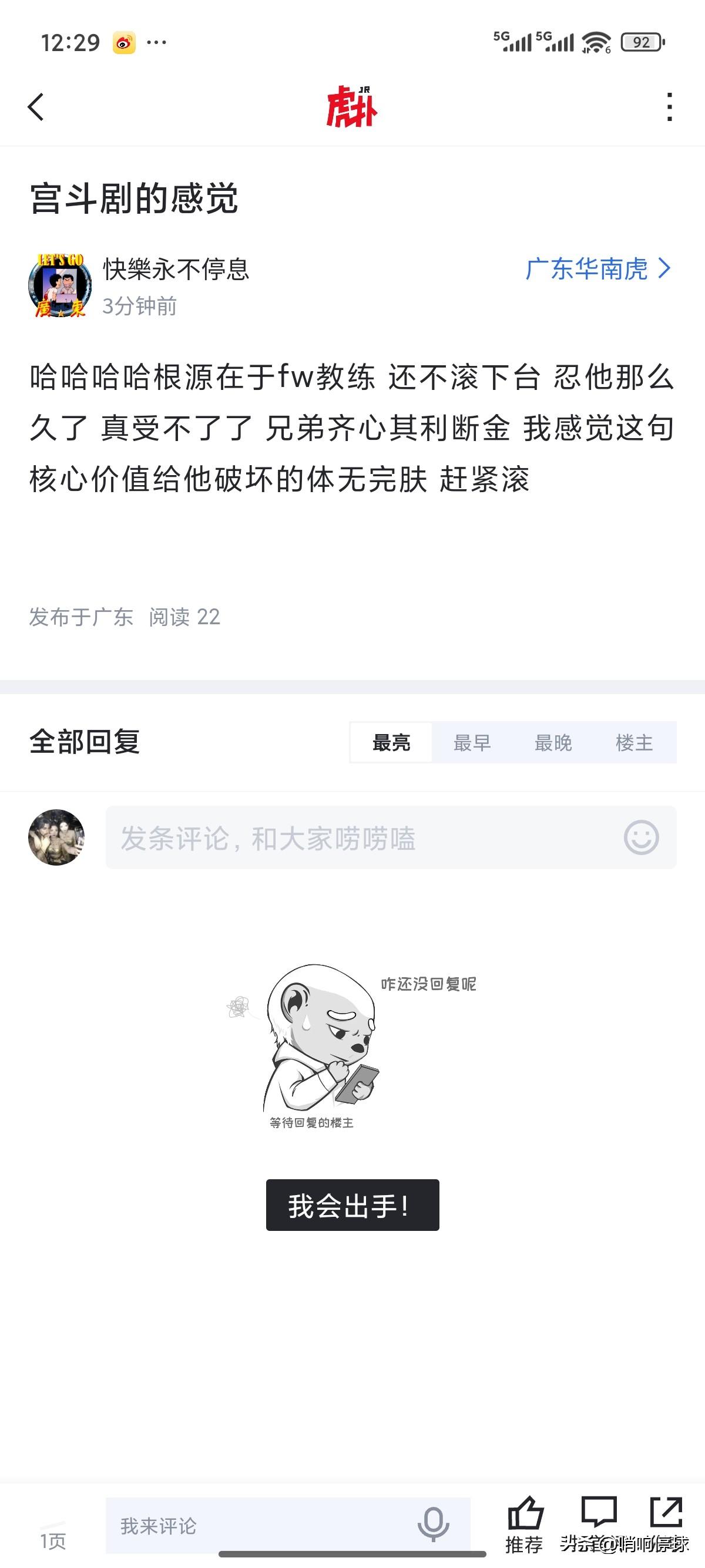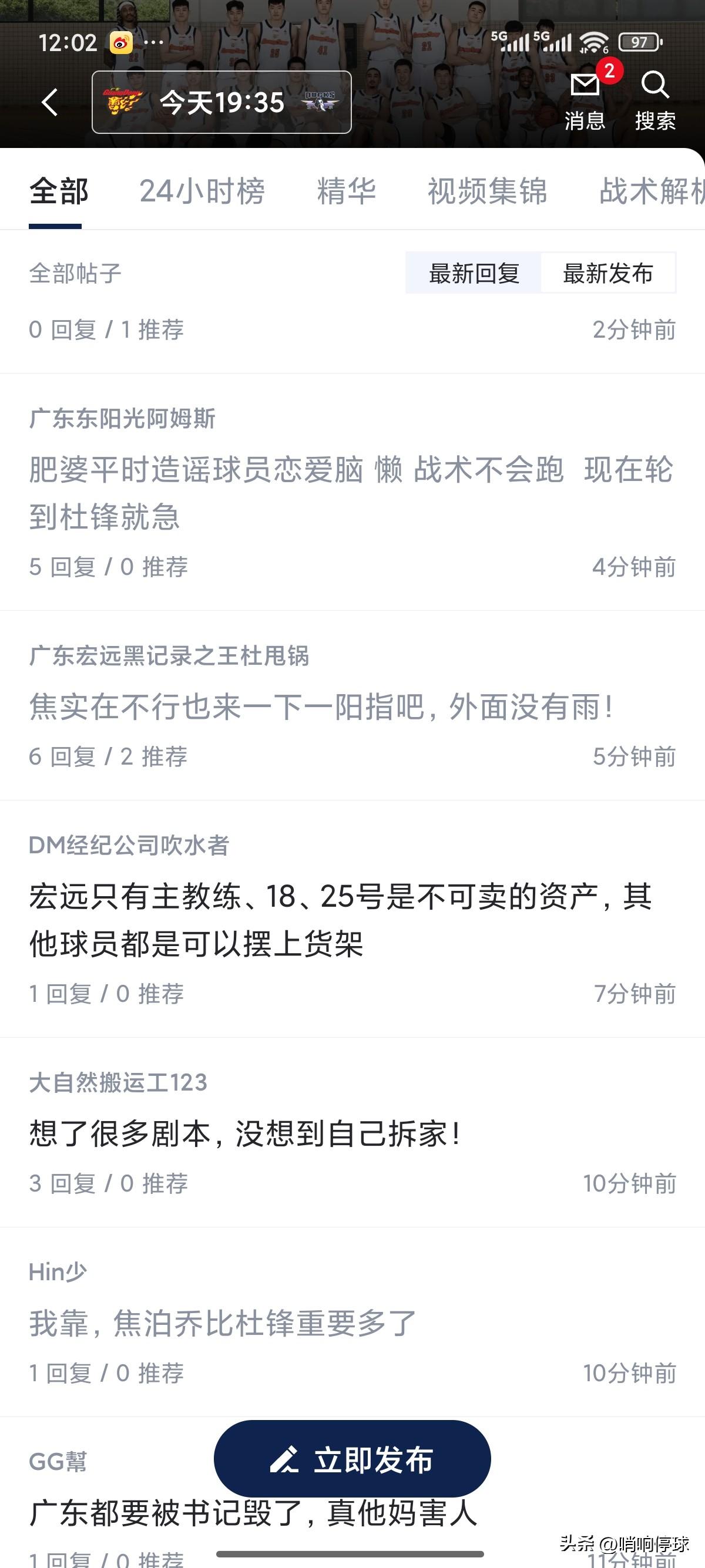 彻底乱了,广东宏远上演宫斗,球迷集体上线爆发! 今天上午,焦泊乔突然请假离队成了导火索,近期广东战绩崩盘跟杜锋一系列骚操作彻底激怒广东球迷,目前专业篮球板块,无数广东球迷在痛心疾首指责杜锋跟俱乐部,毕竟杜锋可以坐稳,离不开俱乐部背后的支持! 懂球的真球迷,可以去各大篮球专业论坛看看,现在广东球迷还有支持宏远的吗?人人喊打,甚至希望解散拆家,还支招徐杰胡明轩等集体起义,还有要纪检委等彻查广东宏远跟杜锋了! 这一次,杜锋携手宏远俱乐部,真的把广东球迷伤透了,甚至辽宁球迷来安抚说情都不行,谁帮杜锋跟宏远说话都是害人,必须不破不立,宁可宏远解散也要看到新希望6