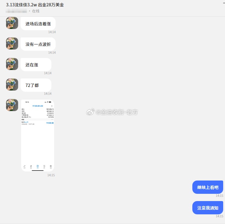 恭喜沈女士跟上老方实盘指导,微博4452多单拿下200点利润,为账户增值31000美金!