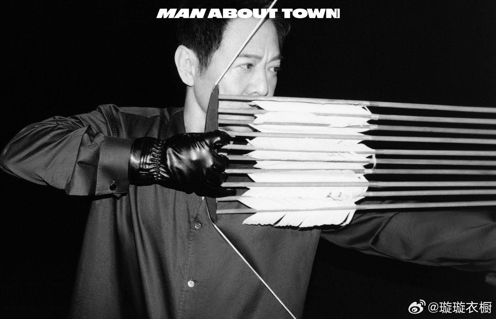 李连杰弓弦震颤点燃时光,箭矢划破黑白剪影,木窗棂框住岁月褶皱。墨镜后的眼神藏着江湖,西装与唐纹共舞东方哲思。MAT李连杰封面