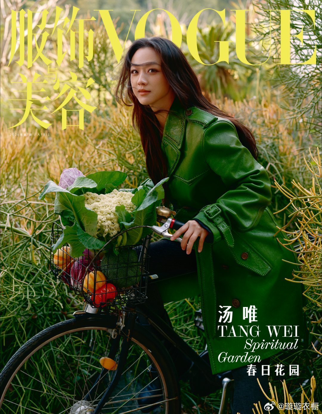 汤唯菜篮载满春日调色盘,青蔬与皮革共舞田园诗。捧颗鸡蛋似握晨曦,窗棂框住自然的温柔絮语。VOGUE汤唯四月刊封面汤唯的VOGUE大片是在菜园里拍的