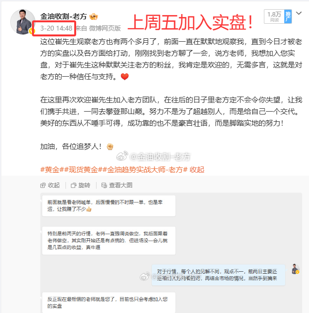 主动的人已经先人一步出金了,想要吃肉的人,从不会放过任何一个机会,也感谢一直以来信任老方的粉丝朋友,每当你们私信过来询问操作策略和行情,老方从来都不藏着掖着!既然来了,那都是信任老方的实力,因为场外跟单的朋友也是真金白银,老方又怎会让你们失望呢?有时看到你们过来报喜我也深感欣慰,但请你们记住你们的收获不单单只是我老方一个人的功劳,虽然说我的策略很重要,但没有你的那份信任,那盈li又从何说起呢?