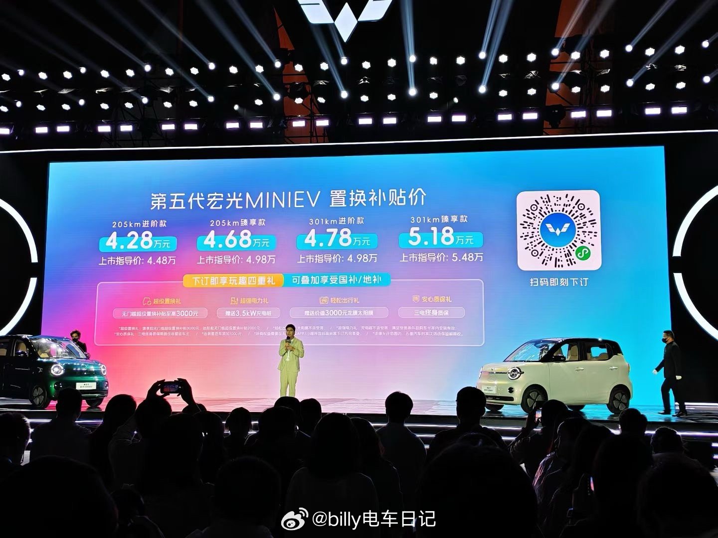 今晚正式上市的第五代MINIEV,售价 4.48万-5.48万元,补贴后 4.28万起,四门四座、205km/301km两种续航。产品思路已经不是当年那个“能遮风挡雨就行”的小车逻辑了,而是在往更精致、更实用、更像一台正经城市通勤车的方向走。