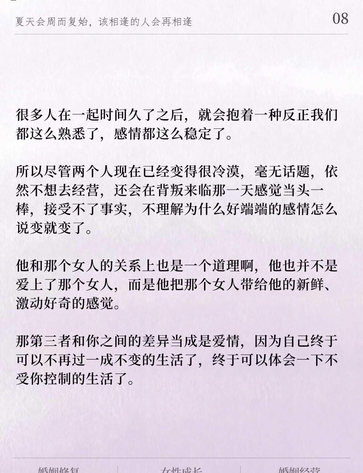 游戏人间 1 2026-03-28 16:53 夫妻应该是命运共同体,从一而终的夫妻容易做到,任何一方有过其他性伴侣都难。女怨男性不负责,男恨女性不纯洁。女人纯洁大部分男人愿意做好男人的,不纯洁好人也觉得做好男人不值。离婚找初恋结果也差不多,也是被人玩过的,暂时的甜蜜罢了。