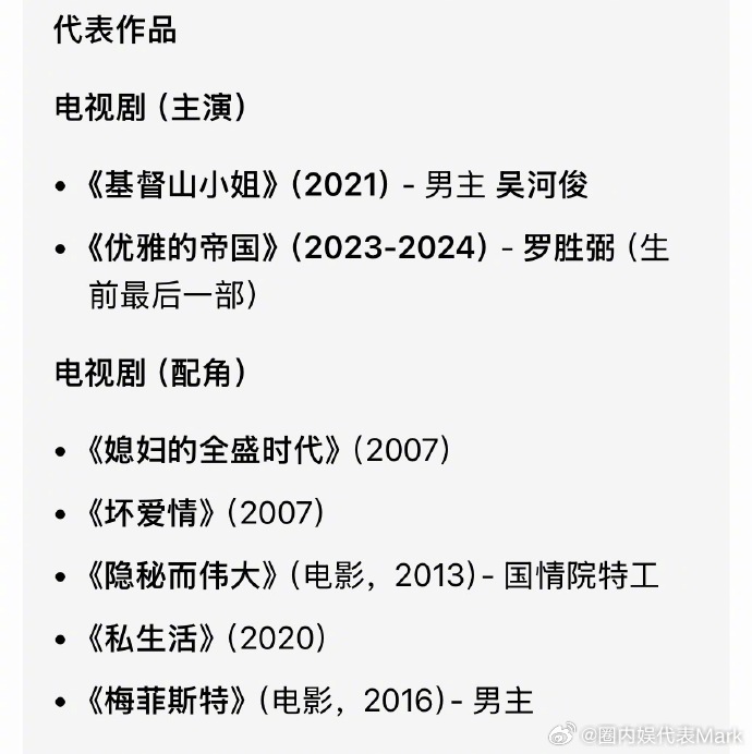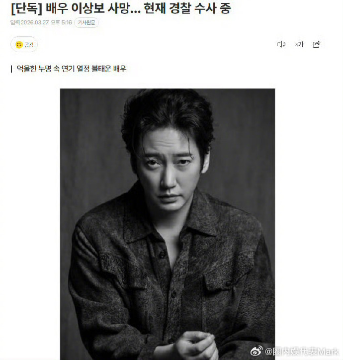 演员李尚宝去世 才 45 岁,太突然了!眼熟却叫不上名的实力派,演过《基督山小姐》《优雅的帝国》男主,还在《隐秘而伟大》里露过脸。一路走好,愿天堂没有病痛。