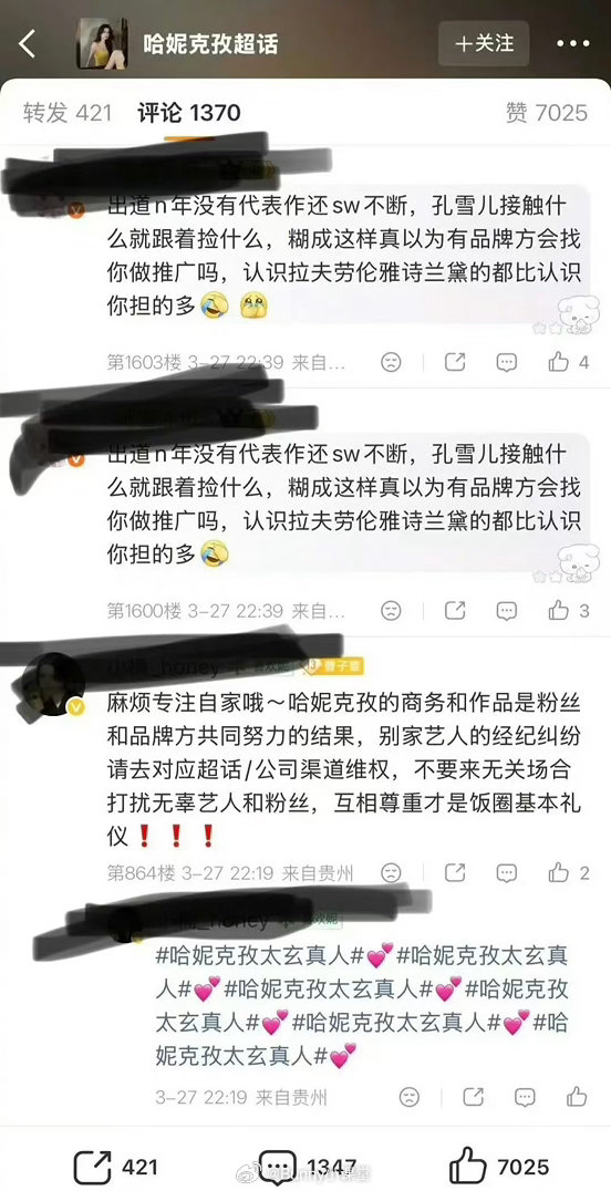 孔雪儿靠逐玉副CP翻红,粉丝状态仿佛又回到了当年选秀的时候,不仅吐槽经纪公司泰洋川禾,还把同公司哈尼克孜的商务冲了