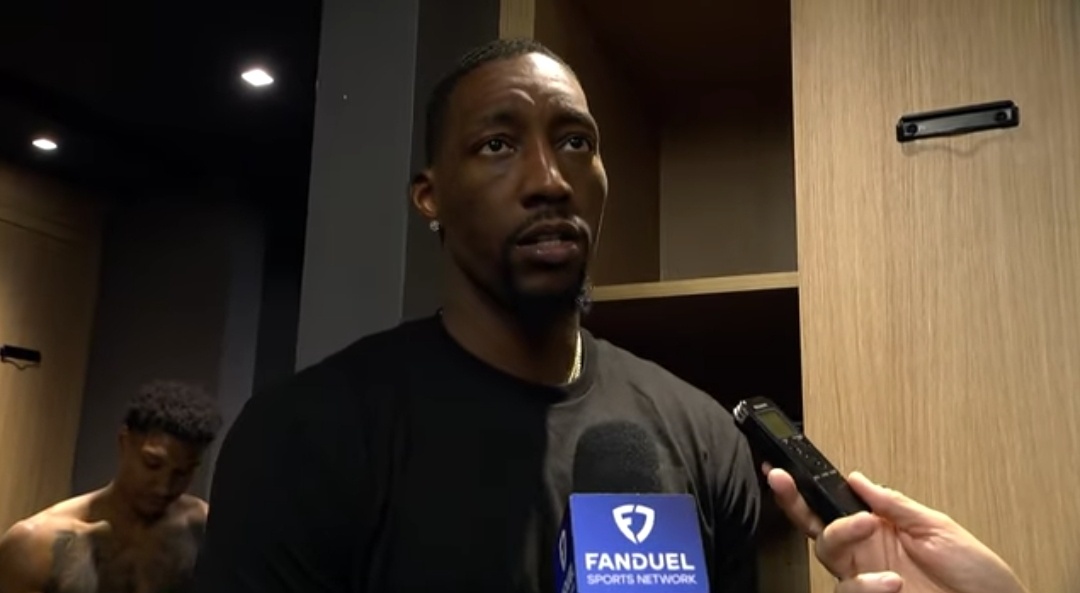 热火不敌骑士,赛后阿德巴约在更衣室接受了媒体采访。