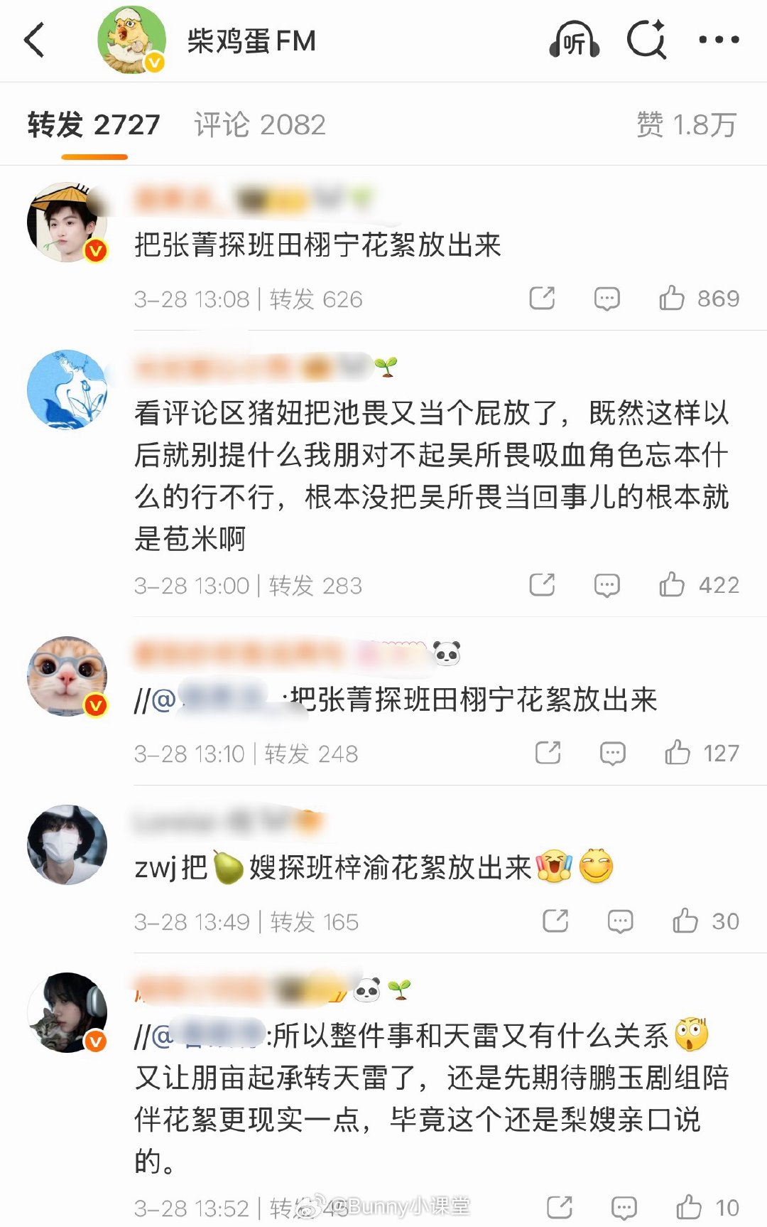柴鸡蛋声明称从未授权原作除影视剧外任何形式的改编权,请相关方即刻删撤侵权内容,并停止传播不实信息。 评论区CP粉要求当初田栩宁、梓渝花絮,转发区唯粉要求放出嫂嫂探班花絮