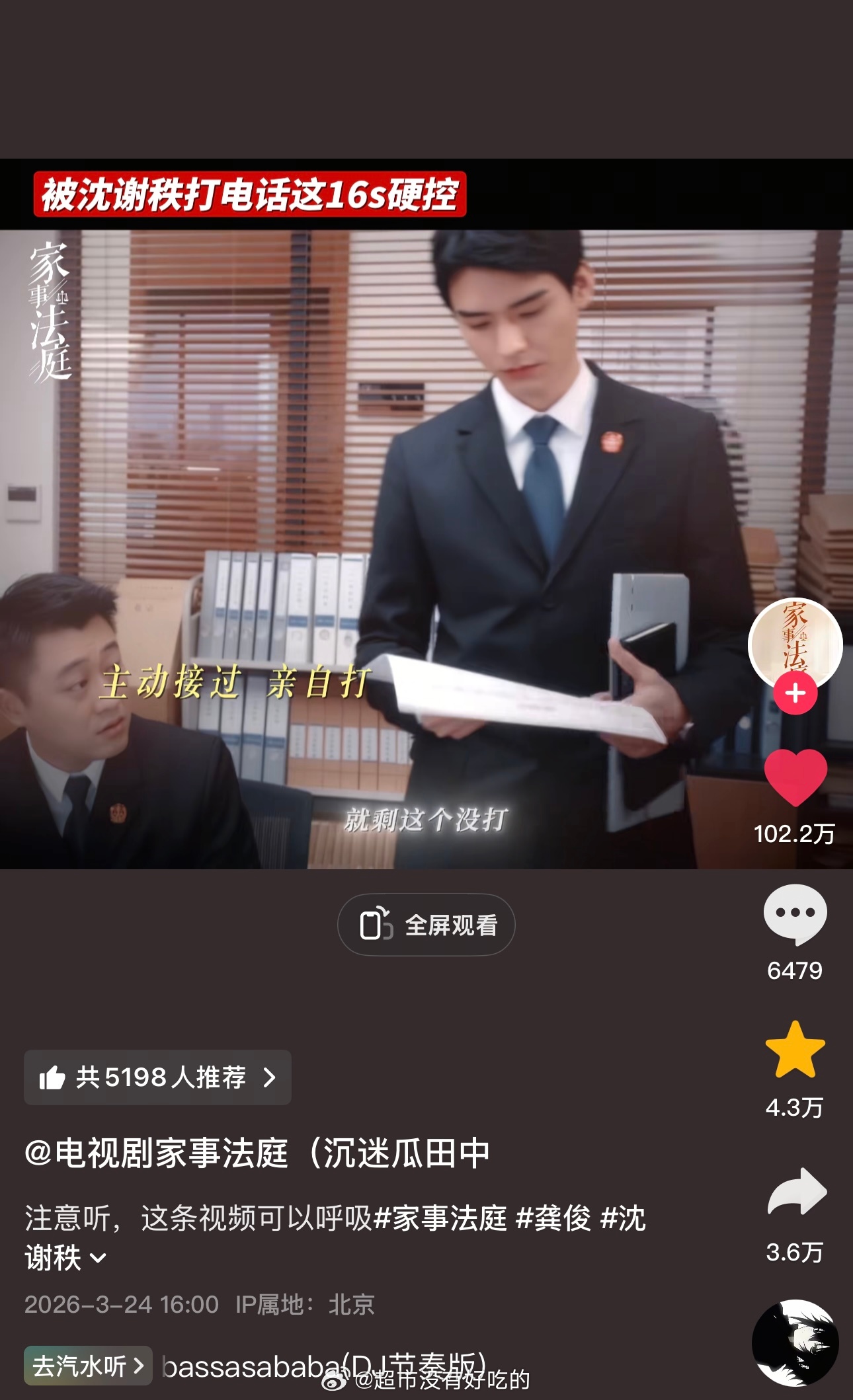 《家事法庭》官抖第一个破百万作品来了龚俊打电话片段台词出圈,被抖人夸赞龚俊演技牛