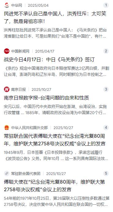 洪秀柱在接受媒体采访时抛出一句极具分量的话:“如果台湾不是大陆的领土,清朝怎么能把台湾割让给日本?”不少“台独“支持者一时间竟无从反驳,一段历史,横跨百年,绕不过的还是“归属”二字,嘴上争来争去,铁打的条约和档案却从来没变过,历史的逻辑其实很简单--有权割让,说明本来就属于你。 麻烦看官老爷们右上角点击一下“关注”,既方便您进行讨论和分享,又能给您带来不一样的参与感,感谢您的支持! 去年,随着台湾光复80周年纪念日的临近,两岸关于历史与归属的讨论再次成为焦点。就在这个节骨眼上,中国国民党前主席洪秀柱在一次媒体采访中,没有用那种照本宣科的政治口号,而是轻描淡写地抛出了一句话,这句话就像一把钥匙,直接捅开了“台独”分子怎么也绕不过去的历史死结。 她说了什么呢?她说:“如果台湾不是大陆的领土,清朝怎么能把台湾割让给日本?”这话一出来,岛内那些平时在政论节目上口若悬河的“台独”支持者,一时间竟然找不出话来反驳。为啥?因为道理太硬了,硬到就像地上的石头,你踢它一脚,疼的是自己的脚趾头。 咱们把话说明白点,1895年那会儿,清朝在甲午战争中打输了,派了李鸿章去日本马关(就是现在的下关)签了那份丧权辱国的《马关条约》。条约里写得清清楚楚,白纸黑字,把“台湾全岛及所有附属各岛屿”和“澎湖列岛”永远割让给了日本。这就好比是你家的一套房子,你把它过户给了别人,前提是什么?前提是你必须是这房子的主人!如果你压根就不是房东,你拿什么去跟别人做买卖?哪来的权利签字画押? 这就是洪秀柱那句话的逻辑精髓所在。你把台湾割出去,本身就证明了你对台湾有主权。如果真像某些人胡扯的那样,台湾那时候不属于中国,那日本干嘛要逼着清朝签条约?国际社会干嘛承认这份条约?说白了,这份虽然屈辱,但具有法律效力的条约,恰恰成了“台湾是中国一部分”的铁证。这不光是历史,这是国际法承认的既定事实。 其实,清朝为了保住这块地,付出的心血可不少。早在宋元时期,咱们的祖先就已经开始管理澎湖了。到了元朝,朝廷正式在那边设立了“巡检司”,就像现在的派出所一样,那是正儿八经的行政管辖。到了清朝康熙年间,清军进入台湾,把台湾纳入了大清版图,当时归福建省管。后来随着去开垦的人越来越多,经济也发展起来了,到了1885年,清朝干脆单独设立了“台湾省”,让它成了当时中国的第20个行省,跟内地各省平起平坐。要不是被逼无奈,谁会把自己辛辛苦苦建起来的一个省给割出去? 当然,历史的账要一笔一笔算。1945年,日本在二战中战败投降,那之前签的《马关条约》自然就失效了。根据1943年中美英三国发表的《开罗宣言》,明确规定日本所窃取的中国领土,像东北、台湾、澎湖这些地方,都要归还中国。后来的《波茨坦公告》又再次确认了这一点。所以,1945年10月25日,中国政府在台北中山堂举行了受降仪式,正式宣告“恢复对台湾行使主权”。从那天起,台湾在法律上、在事实上,都彻彻底底地回到了中国的怀抱。今年咱们国家设立“台湾光复纪念日”,就是为了把这个铁一般的事实刻在历史上,让后人不要忘记。 有些人可能还要犟嘴,搬出什么1951年的《旧金山和约》说事,说里面没提台湾归谁,所以“台湾地位未定”。这里咱们必须得说清楚,那个和约,当时的中国政府(无论是大陆还是台湾的政权)都没有被邀请参加,也没有签字,对中国来说那就是一张废纸。这就好比邻居们商量着把你家的东西分了,你本人不在场也没同意,这能算数吗?显然不算。 到了1971年,联合国大会通过了第2758号决议,承认中华人民共和国政府是代表全中国的唯一合法代表。这份决议从国际法的层面,彻底堵死了“两个中国”或者“一中一台”的路子。联合国的文件里,台湾的称谓只有一个:“中国台湾省”。 洪秀柱这番话之所以让人没法接,就是因为她把复杂的问题简化了,但又不是瞎简化。她抓住了一个最基本的逻辑:一个地方,能被割让出去,说明它本来就属于这里;能被收复回来,说明它本来就是故土的一部分。 现在岛内有些人,整天喊着“不是中国人”,甚至不承认自己是炎黄子孙,这在洪秀柱看来是极其可笑、背祖忘宗的行为。历史档案就摆在那里,国际条约就印在那里,不是谁嗓门大就能改写的。那些想靠歪曲历史来搞分裂的人,心里其实比谁都明白,这块土地的根在哪。 不管过了多少年,绕来绕去,最终还是绕不开“归属”这两个字。洪秀柱用一个最简单的问题,把那些复杂的政治谎言撕得粉碎。历史的潮流浩浩荡荡,就像她说的那样,两岸难道不能和平相处吗?当然可以,但前提是,我们得先承认一个谁也无法否认的事实:台湾,从来就是中国的一部分。