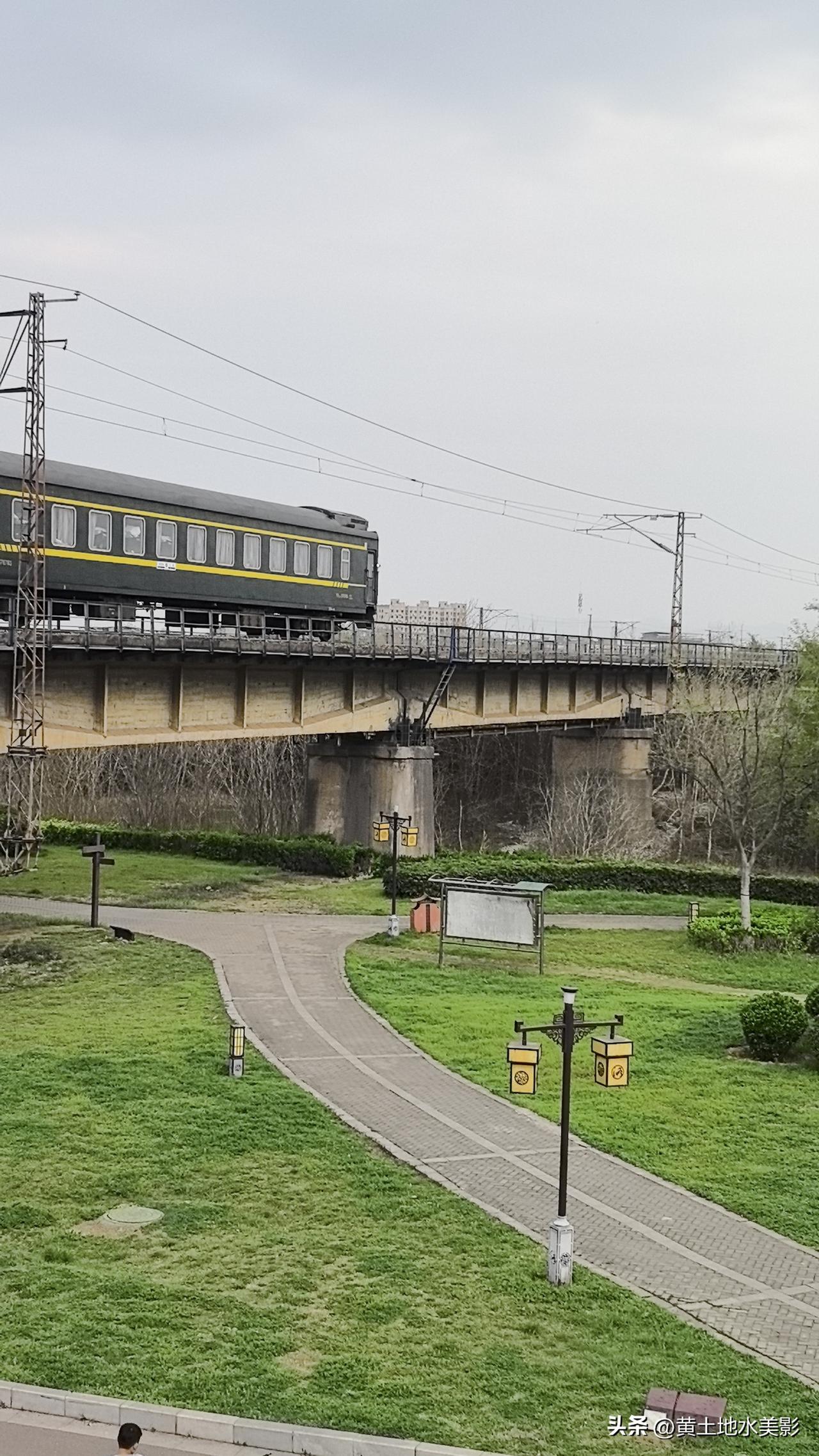 春回大地,万象更新,去疯去野去回春 位于洛阳洛浦公园焦柳铁路大桥以西的一段景色,特别有风味,特别有春天的气息。在这里你可以沿着洛河的河堤直奔朱樱塔,还可以在公园内赏花观春色,更有期待的是,你在这里还可以看到火车穿越春天里的感觉。 一切都是春天里的浪漫和美好。 告诉你1点,若想看到火车穿越的感觉,你就到下午5:00到达这里,在相隔不久的时间里有两趟绿皮火车从这里经过,看上去非常美丽和壮观。
