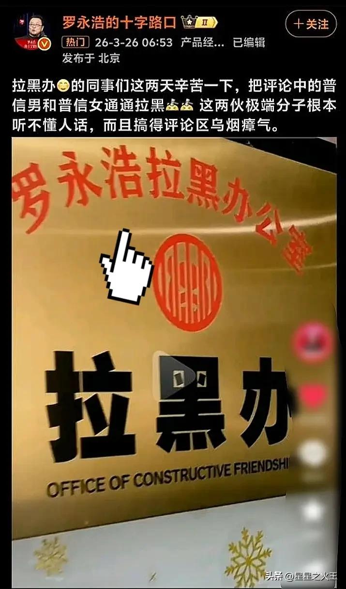 互联网的记性,真是又讽刺又清醒。 前两年为了还债,直播间一口一个“交个朋友”,姿态放得极低,谦卑又诚恳。 如今钱袋子鼓了、债还清了,翻脸的速度快得让人咋舌。 这几天全网都在玩“罗笠岛”的梗,罗永浩和杨笠被网友绑在一起热议。 面对潮水般的抵制声音,他这次半点没退让,不仅晒图成立了专属“拉黑办”,还直接硬气回了一句:谁在乎。 这下大家总算看清了。 欠着巨额债务时,放低身段求大家买单; 等成功上岸、赚得盆满钵满,普通网友的声音,在他眼里早就一文不值。