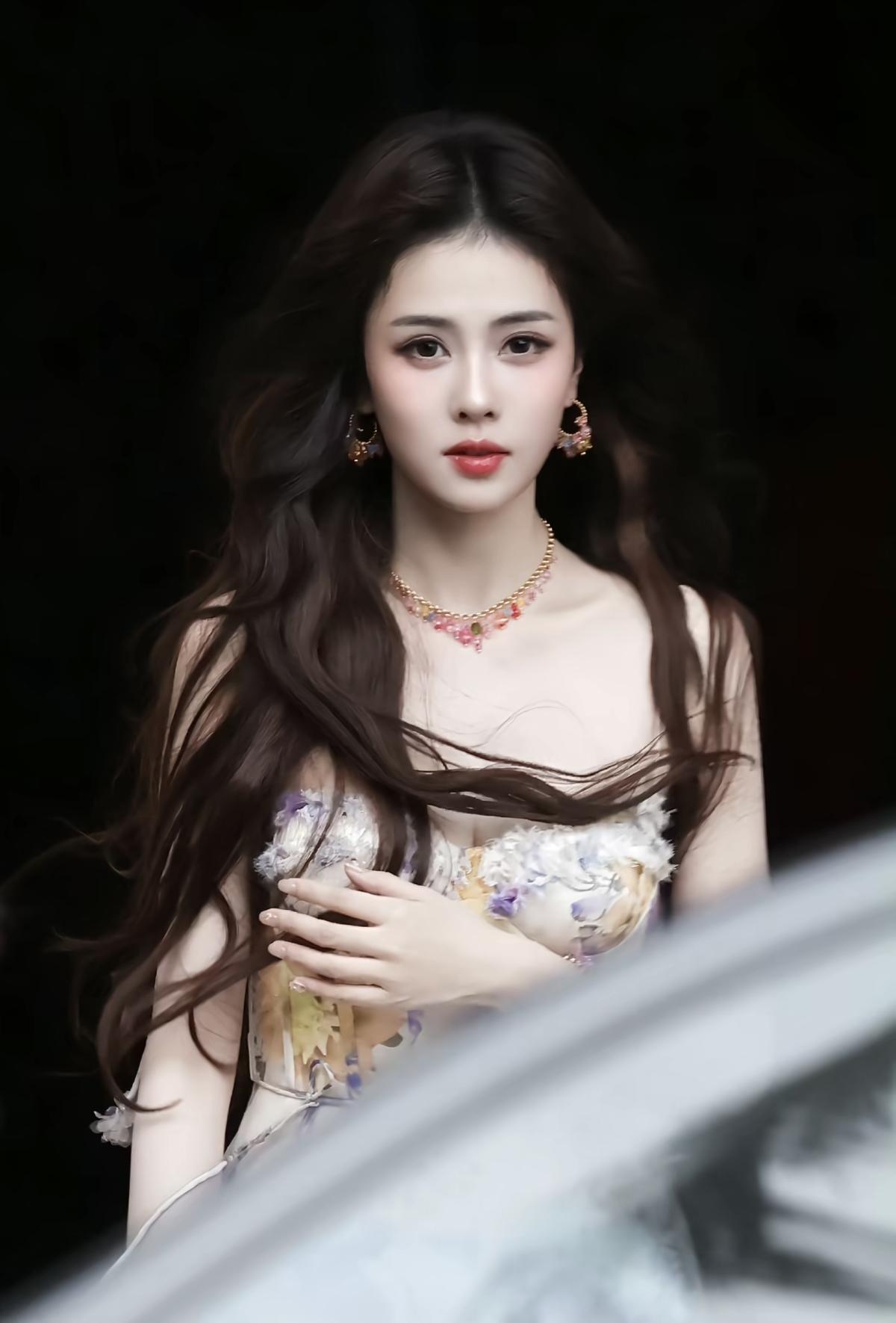 赵今麦白色吊带抹胸长裙造型