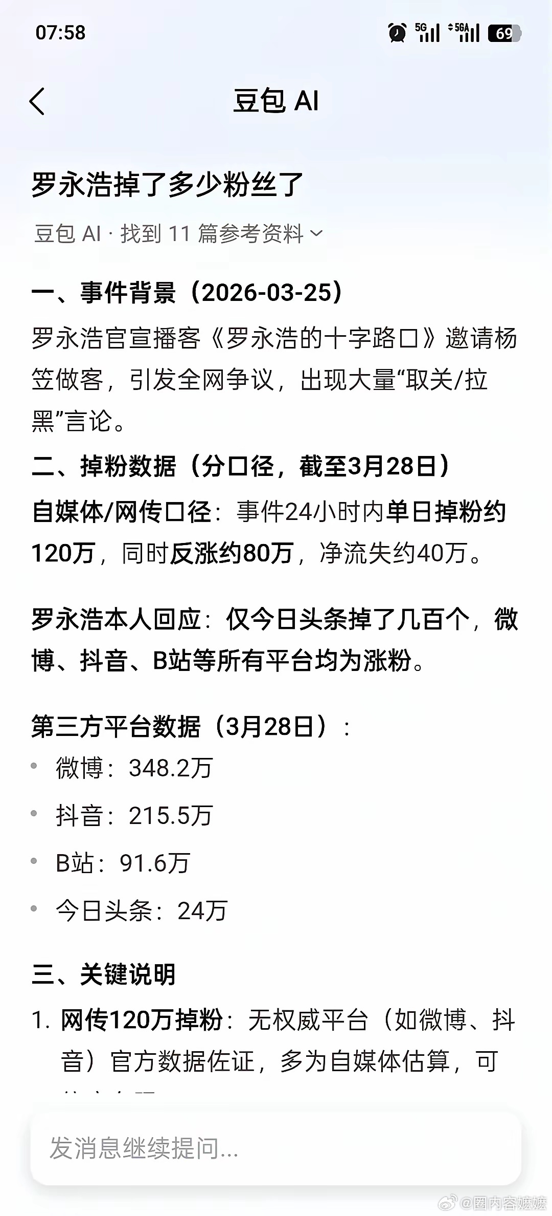罗永浩和全网杠上了,粉丝变化惊人,但我觉得他在走贾国龙的路。早上一起来先是刷到不少人分享个劝诫怎么抵制罗永浩,说白了就是在他店铺买东西拒收啥的。网友怎么就突然那么迅速了,再一刷刷到他的微博,说啥了?说除了今日头条掉了几百个粉,其他平台粉丝还在涨,非常得瑟的样子!问了下豆包,说是有涨有降,不同平台一起算是降了40万。但我觉得更重要的是,他其实和贾国龙是一类人。当初罗永浩曝光西贝贵,收费不合理,还有预制菜。一开始还只是小范围网友在抵制,贾国龙他不像罗永浩那么高调,而是直接让后厨上镜,让厨师接受采访。只是网友不满意,结果贾国龙没有道歉啥的也没放低姿态选择沉默,反而硬刚罗永浩,是不是犟种上身,就觉得自己对,可以对抗所有讨厌他的人?其实很多人并不了解,只是一时间曝光了太多负面,那些原本无所谓的也选择抵制你了!罗永浩唯有一点不同的是他本身经历过好几次公关危机,经验丰富,而且有忠实粉丝。所以这一次能不能挺过这一波还不说,但看他得瑟的样子,我不大看好。罗永浩