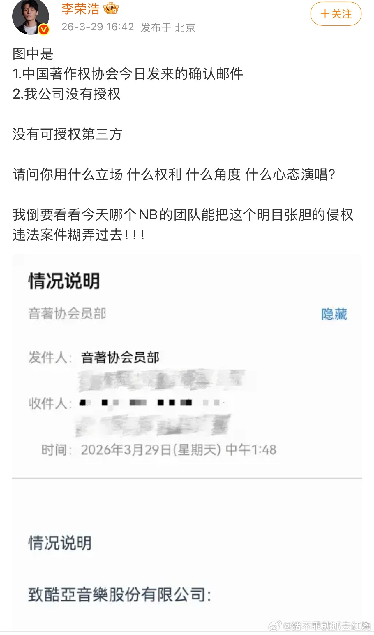 内娱维权硬刚都请向李荣浩看齐好吗,及时回应,有证据上证据,最主要的是说话不委婉,