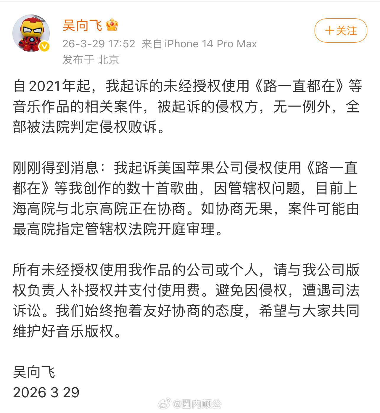 所以看似是在找李荣浩要版权费实则是在借此机会起诉美国苹果公司侵权?何意味意味深长