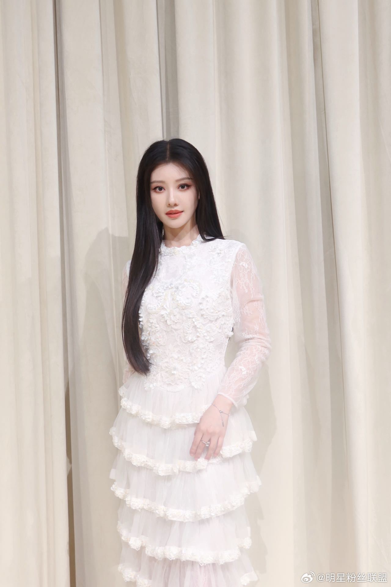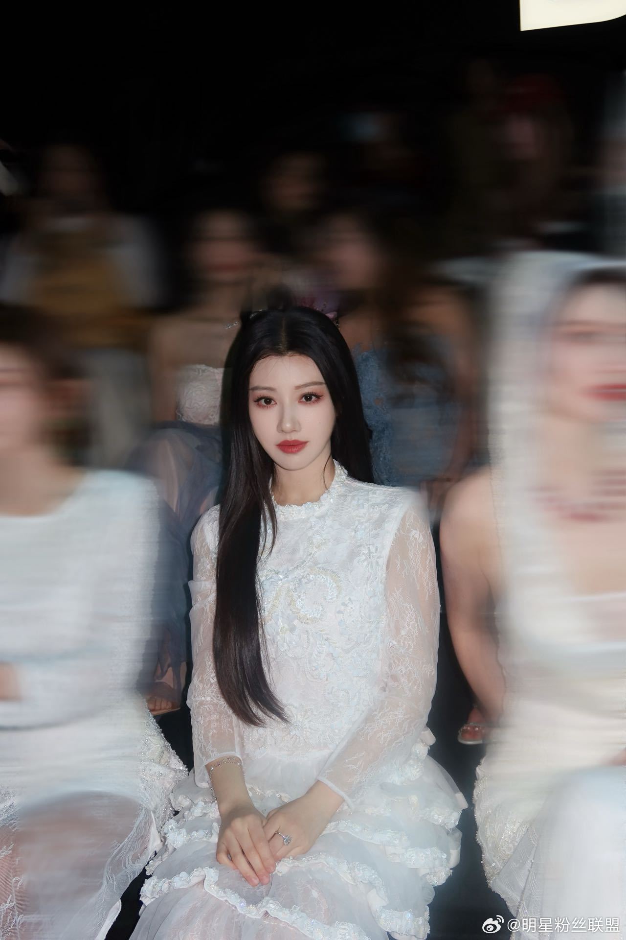 亮相上海时装周一袭白色薄纱仙裙温柔登场,轻盈灵动,氛围感直接拉满,让人一秒心动✨