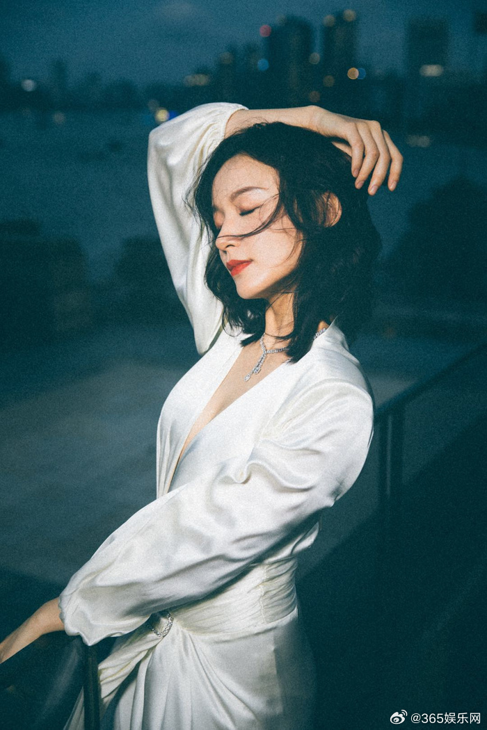 非常惹火!演员施诗,一身白色连衣裙,具有质感的材质,加上干练的剪裁,再来一杯酒,