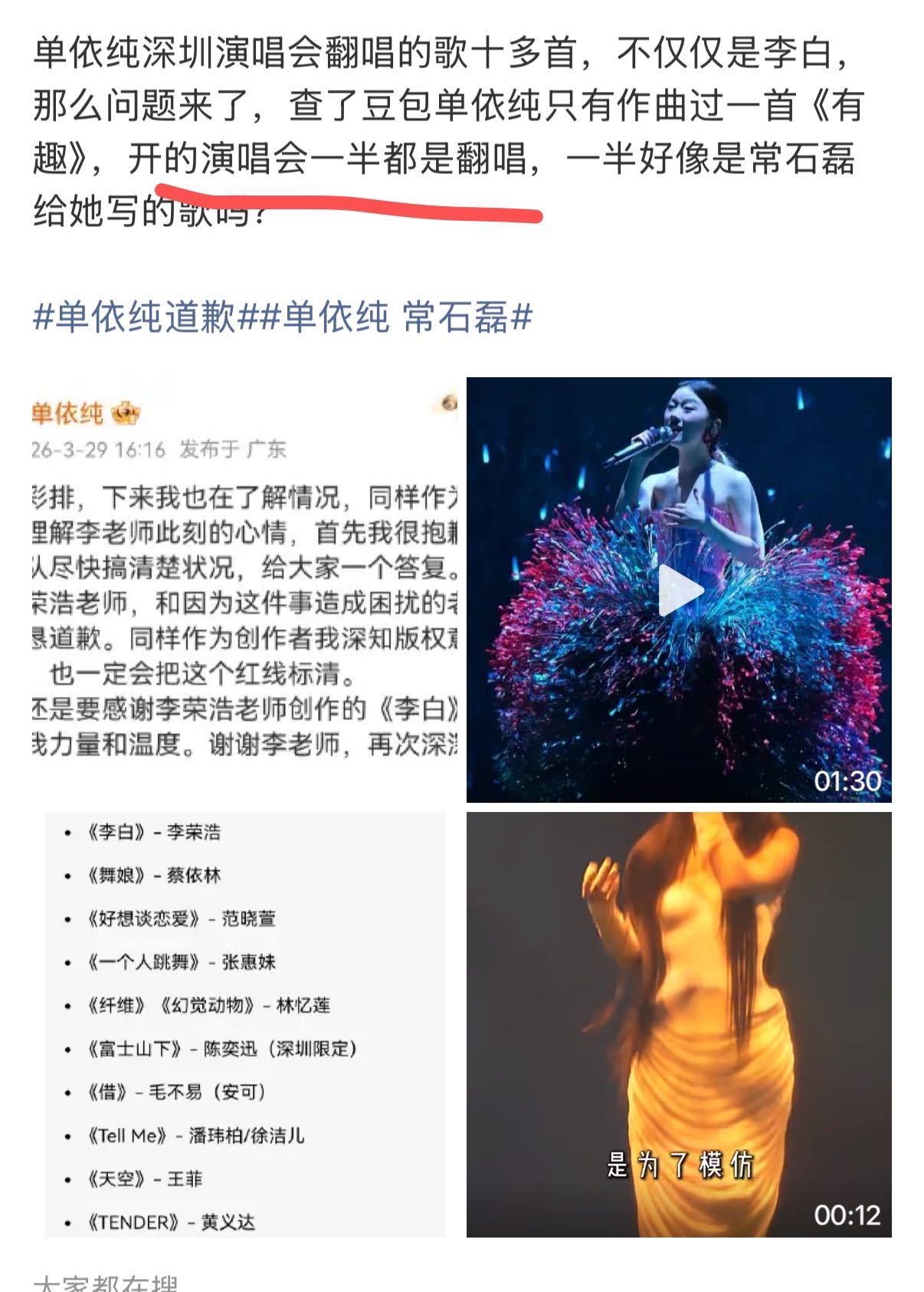 单依纯演唱会一半都是翻唱 吃瓜网友扒出来,单依纯演唱会居然这么多翻唱歌曲,原创几