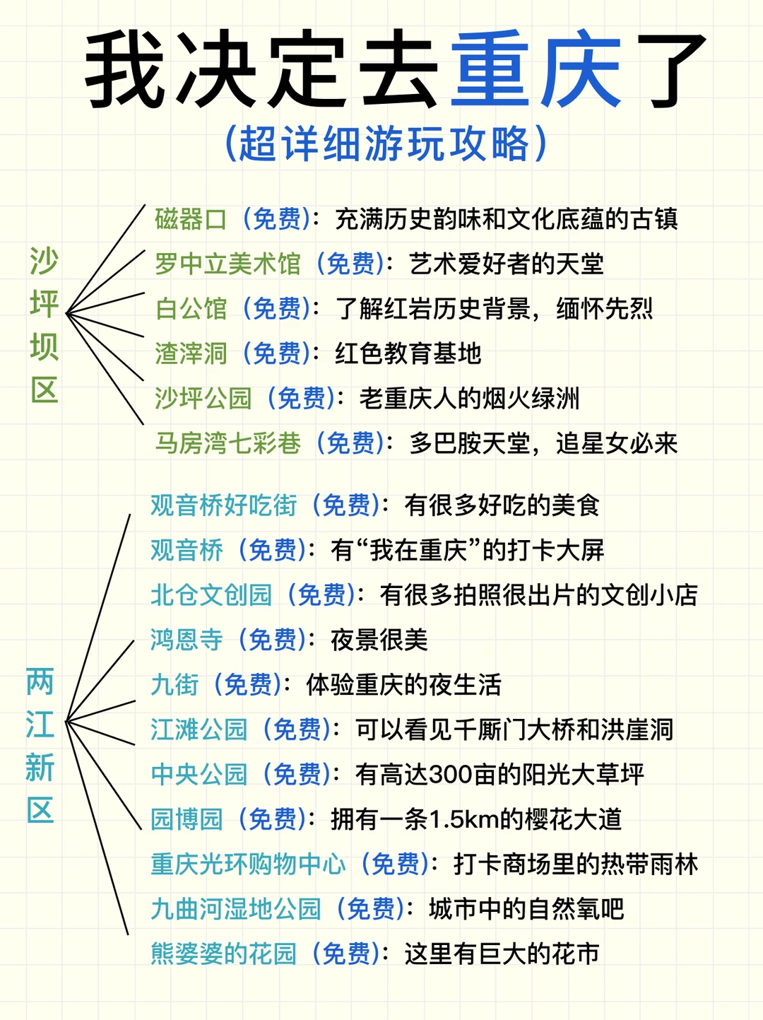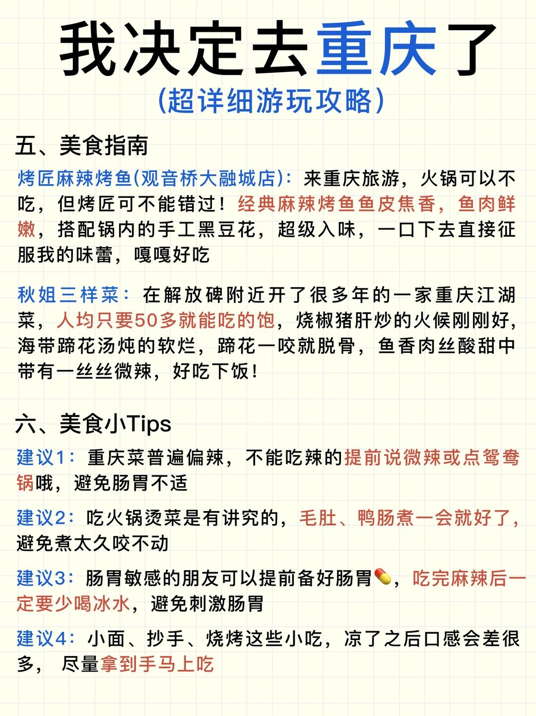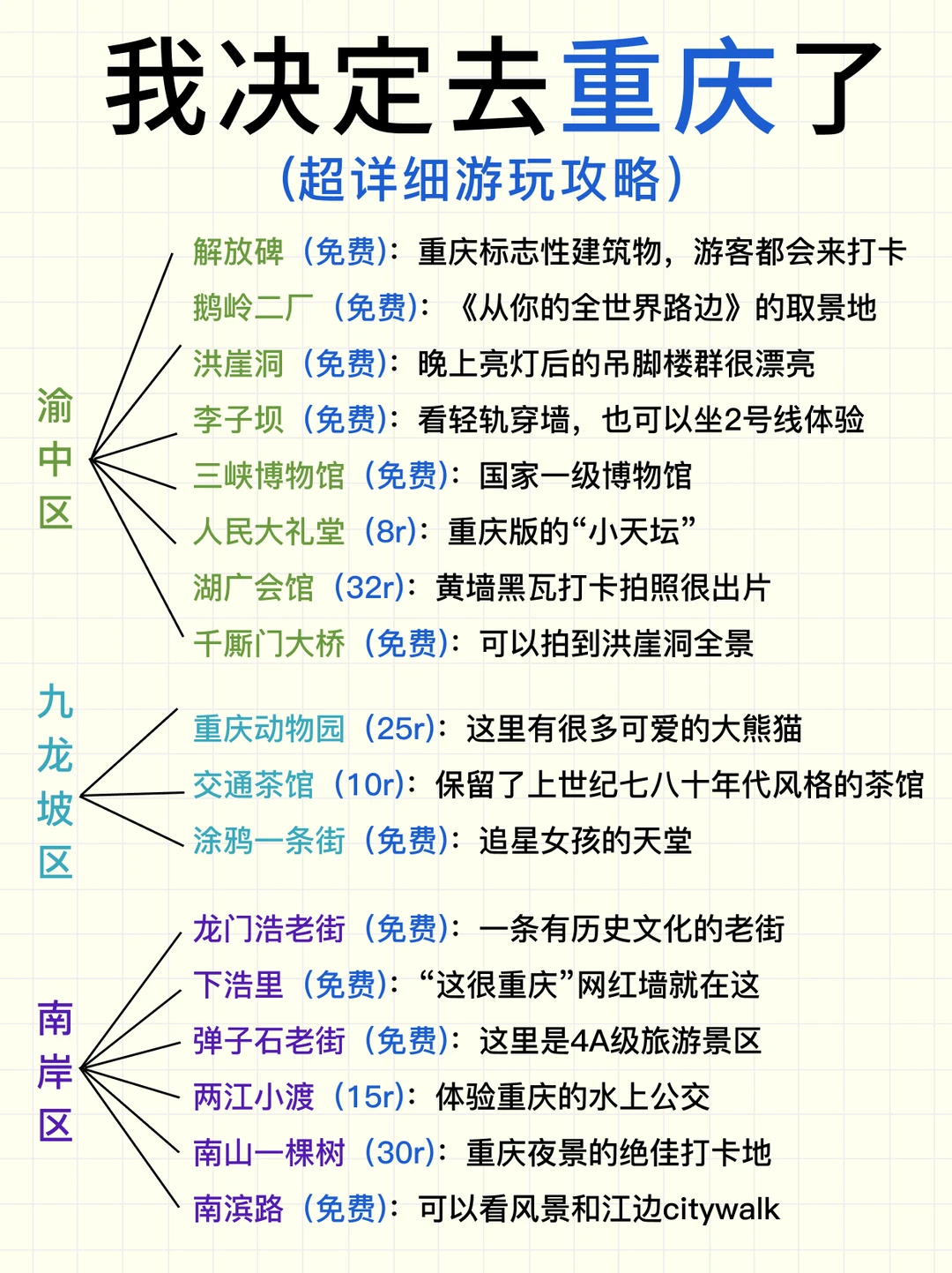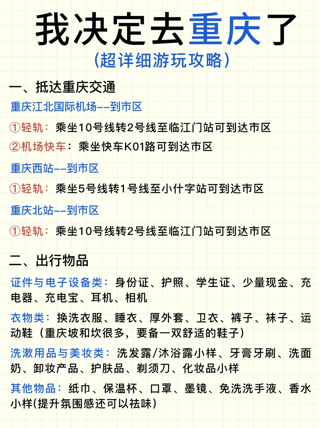 闺蜜说下星期去重庆,提前做攻略真的能省一半心‼主打的就是一个听话😋,连夜赶出这份重庆懒人游玩攻略,不想做攻略的姐妹可以参考下哦~