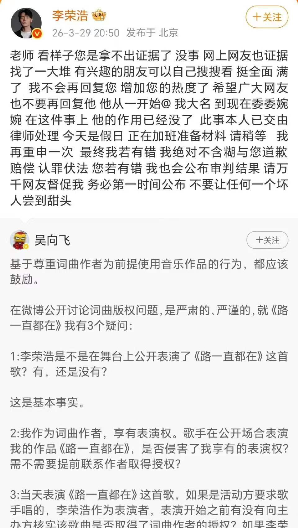 单依纯、李荣浩闹侵权纠纷,陈奕迅如坐针毡。 陈奕迅、李荣浩是多年好友,当晚他和杨千嬅还去了深圳,一起看单依纯演唱会。 更抓马的是,陈奕迅有首歌叫《路一直都在》,词曲作者是吴向飞,而他和李荣浩的侵权纠纷还在发酵之中。 坐在瓜田中央的陈奕迅,表情真的很严肃,他是去监督现场的?