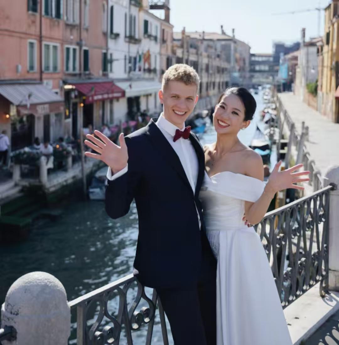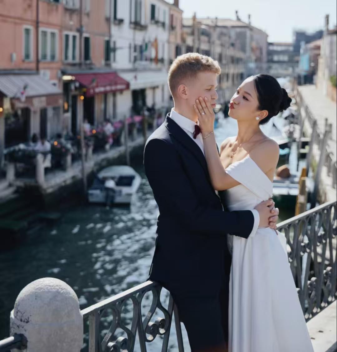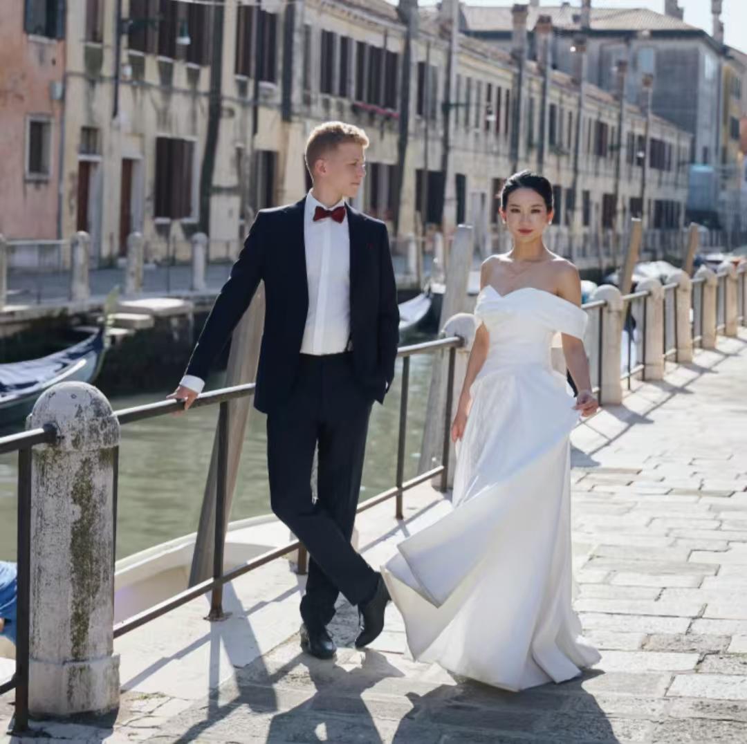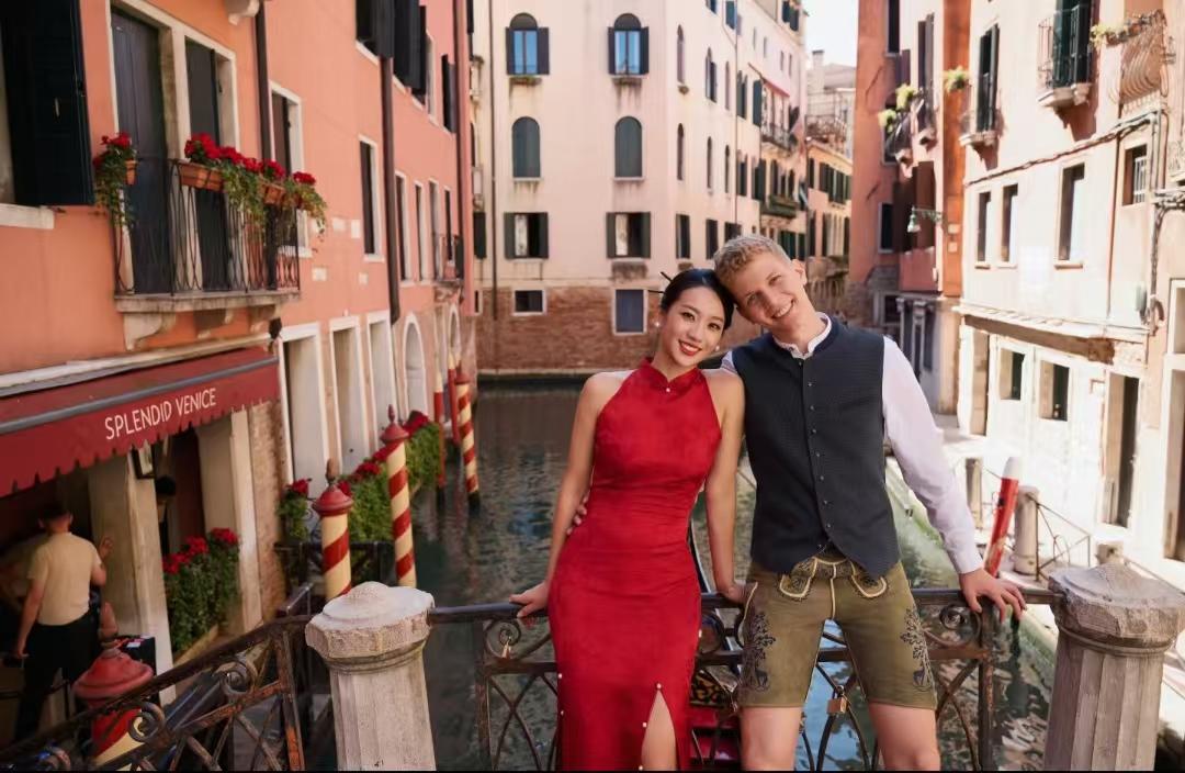 东方旗袍遇上西方水城,远嫁德国的女生在威尼斯拍摄婚纱照。女生29岁浙江人,男生比她小三岁来自德国,俩人初始于水城威尼斯。相恋两年后步入婚姻殿堂,女生说要穿着妈妈亲手缝制的旗袍,在两个人初遇的地方,留下人生中美好的回忆。德国新郎不仅穿上了西装,还特意换上具有民族特色巴伐利亚传统服饰,这种互相尊重、共同投入的跨国婚姻,真的很让人羡慕。