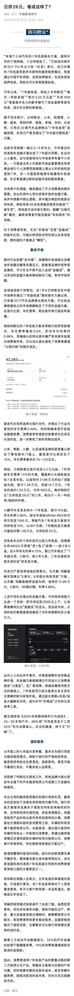 太卷了!车企从价格战转向金融战,已卷至日供29元! 今年以来,“7年超低息,轻松入手特斯拉”“每天一杯奶茶钱”“首付3.25万元起”“月供1918元”等极具冲击力的数字替代了现金直降等宣传标语,成为车企新的角逐场。 这些不同车企推出的金融方案,不约而同地都想努力达成一个目标:把月供压到2000元上下,让消费者瞬间生出“我能买”的念头,而这些直观展现月供、日供的低价数据,对年轻客群的吸引力确实是巨大的。毕竟月供才两千,这对很多人来说都是一个巨大诱惑,确实能提升不少消费者的购车意愿。 但从利润中心变为促销手段的金融方案,却并非想象中那么透明,其中最为典型的就是合同性质。例如有些4S店会将融资租赁包装成“厂家车贷”,用低首付话术吸引客户签约,隐瞒“以租代购”属性,最终消费者可能会面临“车财两失”的风险。 所以,大家在看到这些极其复杂的各种汽车金融贷款的时候,不要只被“低日供”这些看着特别划算的话术所迷惑,要擦亮眼睛,仔细看看里面有没有隐形的消费陷阱,尤其那些捆绑金融服务费、保险、乱七八糟的杂费、违约金等,甚至有些还故意隐瞒“以租代购”属性,一般消费者很难甄别,让人防不胜防。 我们的监管部门需要好好整治规范一下汽车销售市场了,要严查那些虚假宣传和销售欺诈,切实保护消费者权益。 消费者在签约前要看清合同明细,算清总成本,别被那些低价话术套路,免得最后要花更多冤枉钱。不要只看到月供29,最终不管是车款还是利息,都是要自己还的。 但总的来说,个人觉得买车还是买国产车比较值,毕竟现在国产车在辅助驾驶和智能交互等方面都有很大优势。