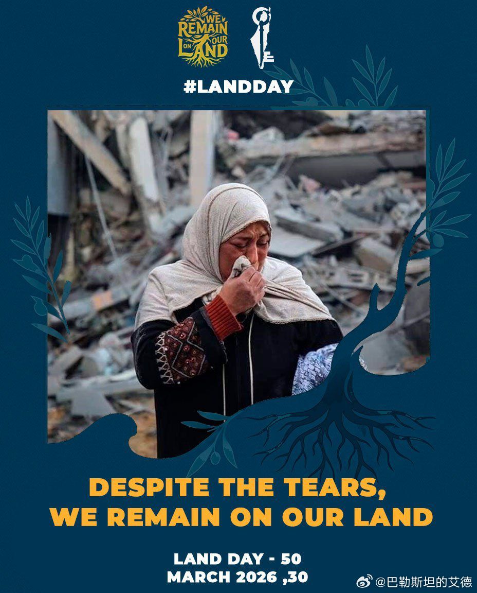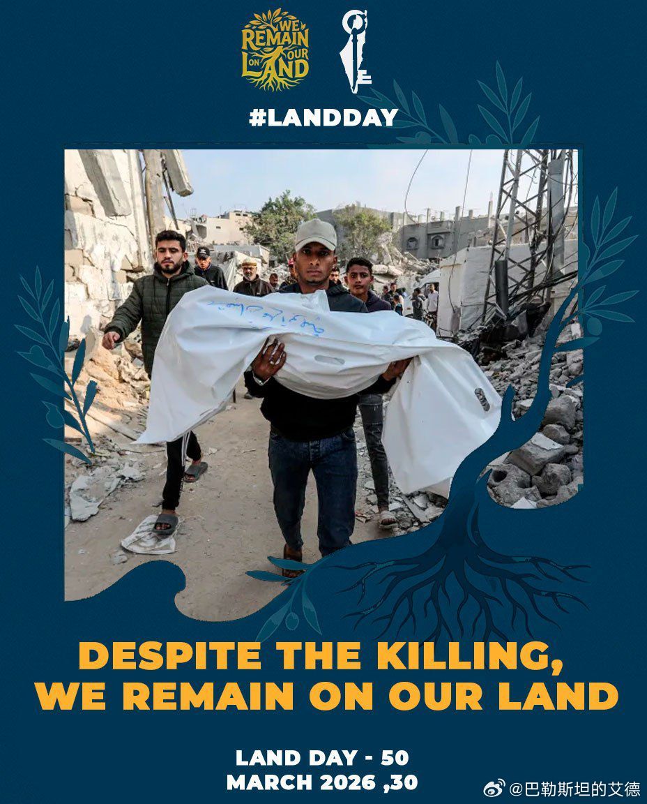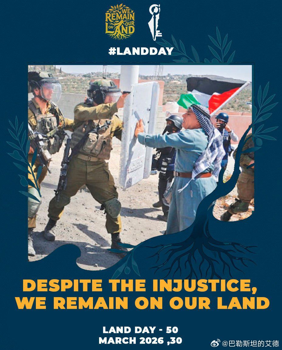 🟥今天是巴勒斯坦土地日的第50周年纪念日。🇵🇸土地日是纪念巴勒斯坦人抗击以色列占领对土著巴勒斯坦人进行种族清洗的斗争的一天。什么是土地日? 每年的3月30日,巴勒斯坦人展示他们抵抗以色列占领的决心。 1976年3月,以色列下令没收属于巴勒斯坦公民的土地。 没收了2000公顷土地3月30日,巴勒斯坦人从加利利北部一直到内盖夫南部进行了示威。 6名巴勒斯坦人被杀 还有100多人受伤 。这一天被称为土地日。 巴勒斯坦人纪念这一天,展示他们继续努力夺回土地的决心。 他们举行守夜活动,并种植橄榄树,作为对以色列占领的集体抵抗行动。🇵🇸🌴🍉❤️看见具体的巴勒斯坦人巴勒斯坦美国打伊朗军费消耗强度为历史之最