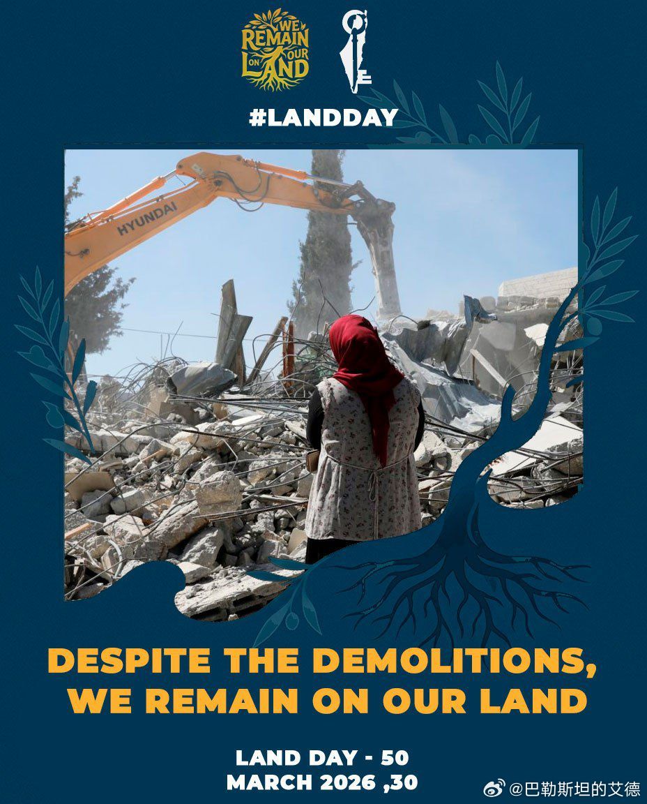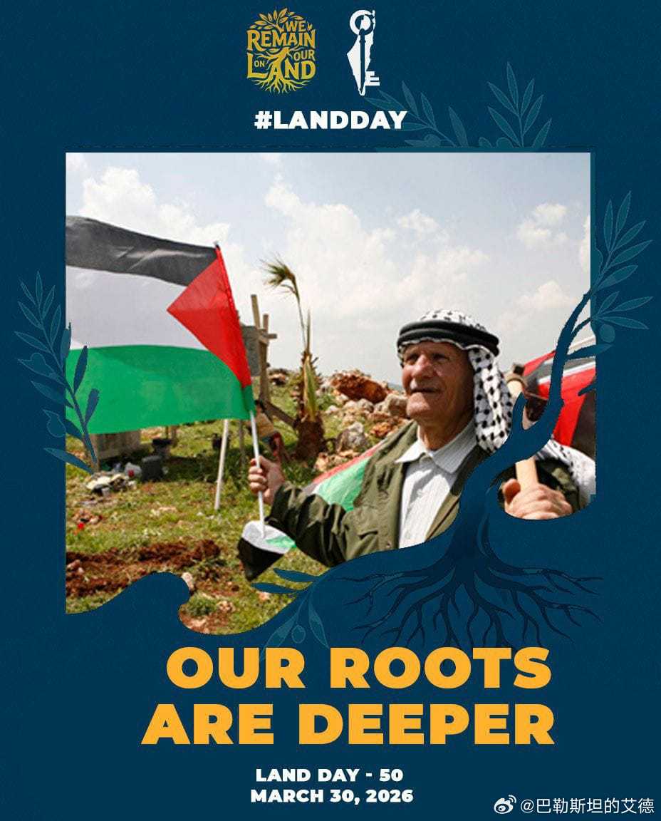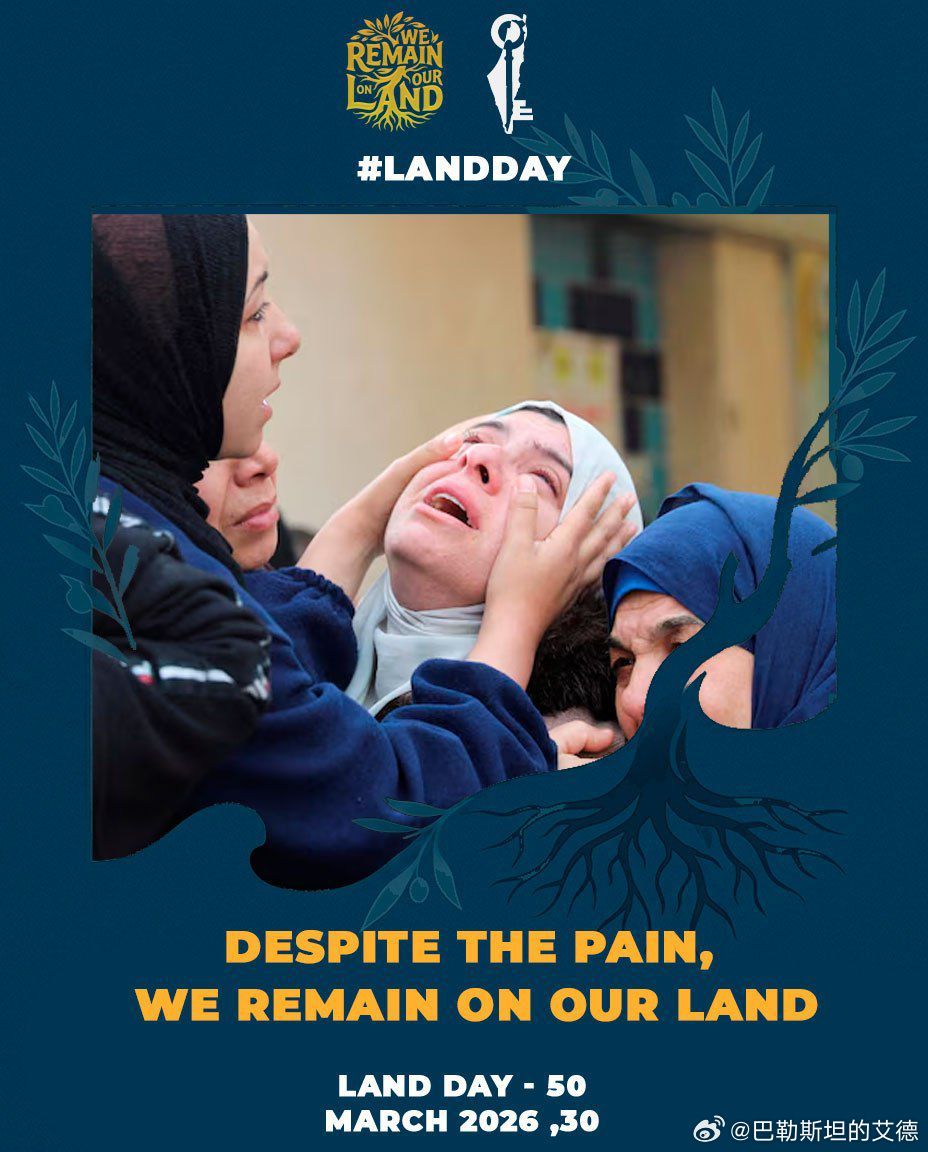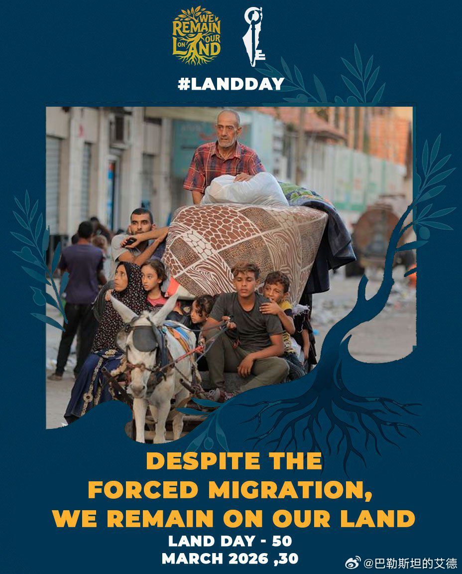 🟥今天是巴勒斯坦土地日的第50周年纪念日。🇵🇸土地日是纪念巴勒斯坦人抗击以色列占领对土著巴勒斯坦人进行种族清洗的斗争的一天。什么是土地日? 每年的3月30日,巴勒斯坦人展示他们抵抗以色列占领的决心。 1976年3月,以色列下令没收属于巴勒斯坦公民的土地。 没收了2000公顷土地3月30日,巴勒斯坦人从加利利北部一直到内盖夫南部进行了示威。 6名巴勒斯坦人被杀 还有100多人受伤 。这一天被称为土地日。 巴勒斯坦人纪念这一天,展示他们继续努力夺回土地的决心。 他们举行守夜活动,并种植橄榄树,作为对以色列占领的集体抵抗行动。🇵🇸🌴🍉❤️看见具体的巴勒斯坦人巴勒斯坦美国打伊朗军费消耗强度为历史之最