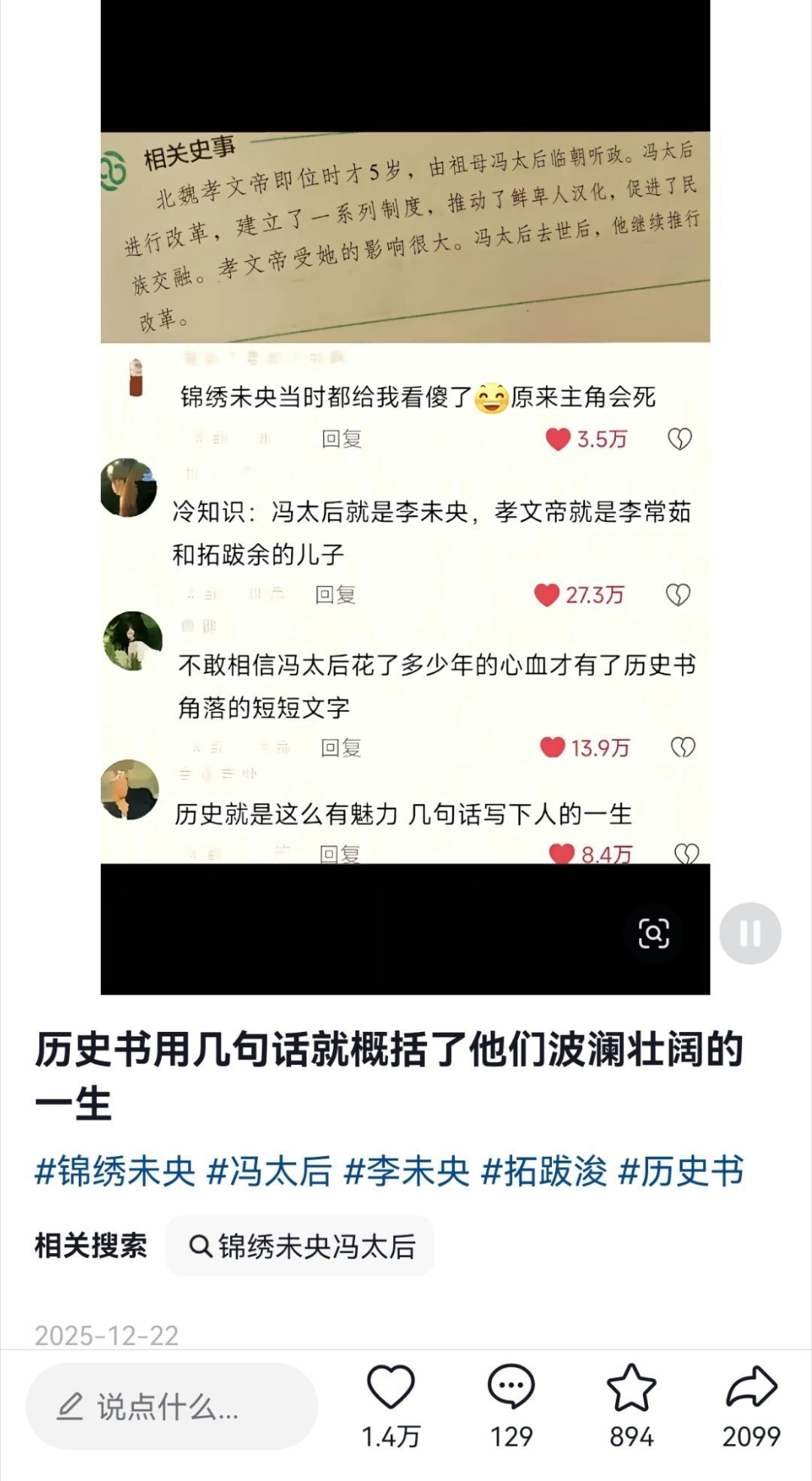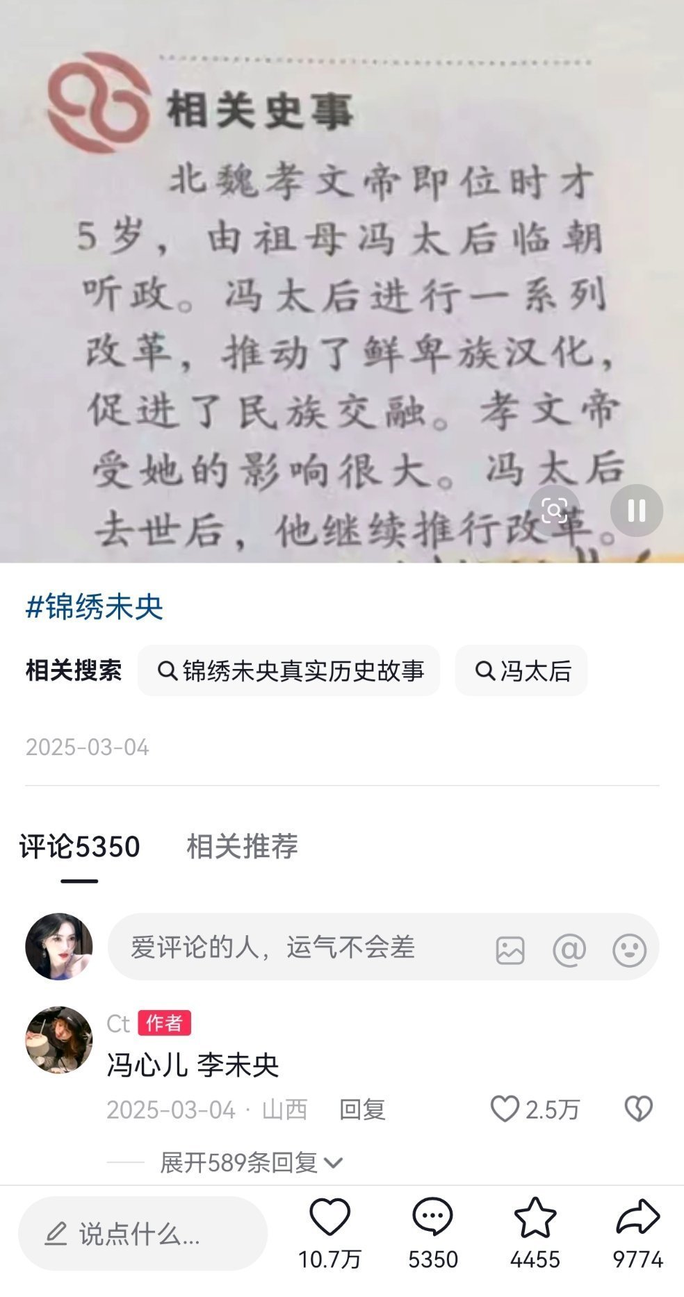 提起冯太后,大家只知道锦绣未央里的李未央,只知道唐嫣锦绣未央就这么权威