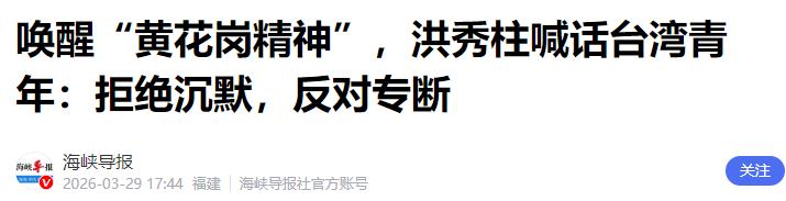 蓝营地震之际,洪秀柱发出青年号召,不到24小时,大陆邀请函到了 近期台湾蓝营内部局势持续动荡,派系纷争愈演愈烈,整体陷入严重的内部消耗状态。面对赖清德当局不断推进的 “台独” 分裂行径与各类专断做法,蓝营不仅没能形成统一有力的应对合力,反而将大量精力耗费在派系内斗上,整体处境愈发被动,发展方向也变得模糊不清。 就在这样关乎蓝营前途、关乎台海局势走向的关键节点,国民党前主席洪秀柱向台湾青年发出了恳切且明确的号召。 3 月 29 日黄花岗七十二烈士殉难纪念日暨台湾青年节当天,洪秀柱公开发声,呼吁岛内青年不要继续保持沉默,要勇于反对专断行径,牢牢守护革命先烈用生命换来的核心价值,重新扛起黄花岗精神所承载的责任与担当。 洪秀柱的这番表态,绝非普通的节日寄语,而是针对当下蓝营乱象的精准发声,其核心用意是呼吁蓝营各派系放下彼此分歧、立刻停止内斗,把全部精力集中到应对赖清德之流的分裂行为上,凝聚起反对 “台独”、守护两岸和平的整体力量。 洪秀柱长期以来始终坚定秉持一个中国原则,坚决反对任何形式的 “台独” 分裂活动,一直心系两岸关系和平发展大局,也格外关注台湾青年的成长与未来。 她清晰地看到,蓝营当下的内耗,只会让 “台独” 势力趁机坐大,只会让台海和平稳定受到威胁,更会让台湾青年失去安稳的发展环境。 台湾的前途从来不是靠内部争斗换来的,更不是靠依附外部势力、搞分裂对立能实现的,唯有坚守两岸同属一中的底线,加强两岸交流合作,才能让台湾获得真正的稳定与发展。 正是出于对民族大义、对台湾民众、对青年未来的责任担当,洪秀柱选择在这个敏感又关键的时刻站出来发声,既唤醒台湾青年认清历史、坚守正道,也督促蓝营各派摒弃私心、团结一心。 令人感慨的是,洪秀柱发出这份青年号召之后,短短不到 24 小时,大陆方面就向国民党主席郑丽文发出了正式的访问邀请函,郑丽文也第一时间回应表示接受邀请,确定将于 4 月 7 日至 12 日率领国民党访问团,前往江苏、上海、北京三地开展交流访问。 这两件事接连发生,时间衔接极为紧密,背后传递的信号清晰直白,没有任何模糊空间。大陆方面始终坚守一个中国原则和 “九二共识”,把反对 “台独” 作为两岸关系的政治基础,一直以最大诚意、尽最大努力推动两岸政党交流、民间往来,愿意和台湾岛内一切坚持一中、反对 “台独” 的力量携手合作,共同维护台海和平,造福两岸同胞。 郑丽文就任国民党主席以来,曾多次公开表达希望到访大陆、推动两岸交流合作的意愿,大陆方面此次发出邀请,既是对郑丽文及国民党坚持两岸和平发展路线的认可与支持,也是对洪秀柱呼吁蓝营团结、反对 “台独” 的积极呼应。 在蓝营深陷内斗、外部势力不断插手台海事务的背景下,大陆的这份邀请函,为蓝营走出困境、回归正确路线提供了重要契机,也向台湾各界充分证明,大陆始终愿意通过平等对话、务实交流化解分歧,绝不会让台海局势被 “台独” 势力推向危险边缘。 洪秀柱呼吁台湾青年重现黄花岗精神,核心是希望青年一代铭记历史真相,认清两岸同根同源、同属一个中国的不可改变的事实,不被 “台独” 的错误言论蒙蔽,不被蓝营内斗的乱象裹挟。台湾青年是两岸的未来,他们的发展空间、人生机遇,都与两岸关系紧密相连。 大陆一直致力于为台湾青年搭建学习、就业、创业、交流的广阔平台,推出一系列惠及台湾青年的政策措施,让台湾青年能切实感受到两岸一家亲的温暖,能在大陆的发展浪潮中实现人生价值。 此次郑丽文来访,必将进一步推动两岸青年交流、经贸合作、文化往来,让两岸融合发展的成果更多惠及普通民众,尤其是台湾青年群体。 从蓝营的整体处境来看,当下最需要的不是派系博弈、权力争夺,而是放下分歧、凝聚共识,扛起反对 “台独”、维护两岸和平的责任。 洪秀柱的发声是唤醒岛内理性力量的号角,大陆的邀请是推动两岸关系向前的务实举措,两者形成了强有力的呼应,也为蓝营指明了正确的前进方向。 赖清德之流的 “台独” 行径,只会破坏台海和平,损害台湾民众的切身利益,把台湾推向动荡与危机,这是两岸全体同胞都坚决反对、绝不接受的。