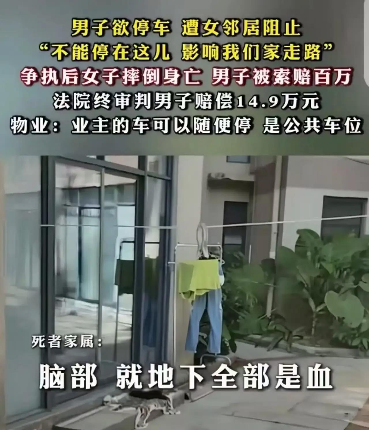 海南一男子把车停在小区楼下,却遭女邻居强烈反对,两人发生争执后女邻居竟意外摔倒死亡,家属索赔122万,法院最终判决男子赔偿14.9万,这究竟是怎么回事? 据了解,该男子将车停在小区楼下,女邻居却认为这影响了她家走路,坚决反对。男子则认为这是小区公共区域,女邻居无权干涉。两人因此发生争执,情绪激动之下,女邻居突然摔倒,最终不幸离世。女邻居家属认为男子应承担全部责任,于是将其告上法庭,索赔122万。然而,法院在审理此案后,却判决男子赔偿14.9万。这一判决结果引发了网友们的热议,有人认为男子无辜,只是正常停车,却要承担如此巨额的赔偿;也有人认为,虽然男子并非故意,但争执过程中可能对女邻居造成了刺激,因此应承担一定责任。更有网友调侃道:“如果李先生听到判决结果倒地了,是不是可以告法官,他们得判决结果导致的,也要承担次要责任!” 这起案件引发了大家对于公共区域使用、邻里关系以及法律责任的深入思考。你觉得男子的赔偿合理吗?快来评论区留下你的看法,一起讨论吧!海口小区惨剧 邻居砸死人