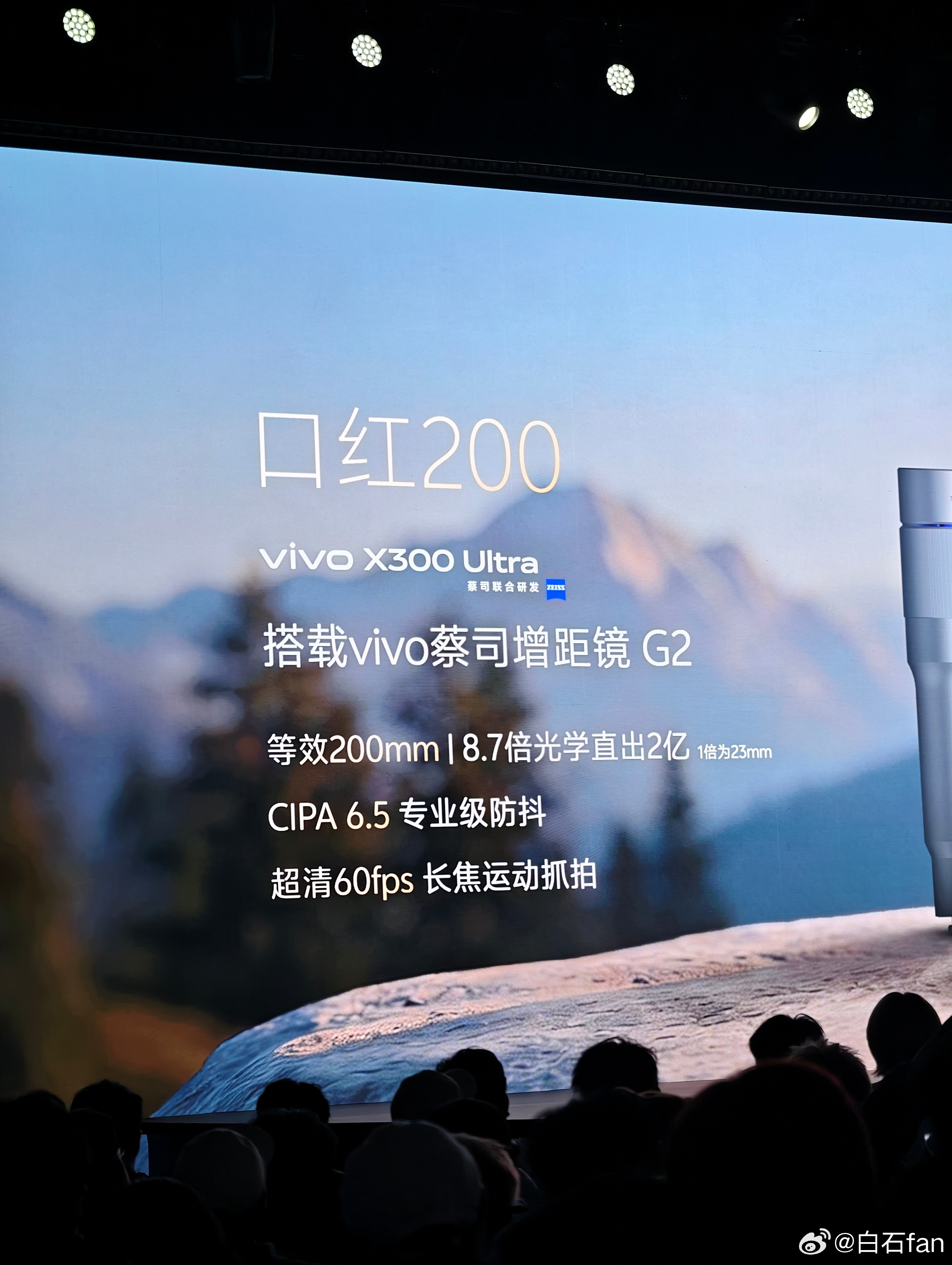 vivo在手机增距镜这块,是遥遥领先的!这次X300 Ultra有两个增距镜,名字也很容易记住:口红200和大炮400,言简意赅,通俗易懂!这真的是演唱会神器啊! 丽江·阿美泽雪山营地