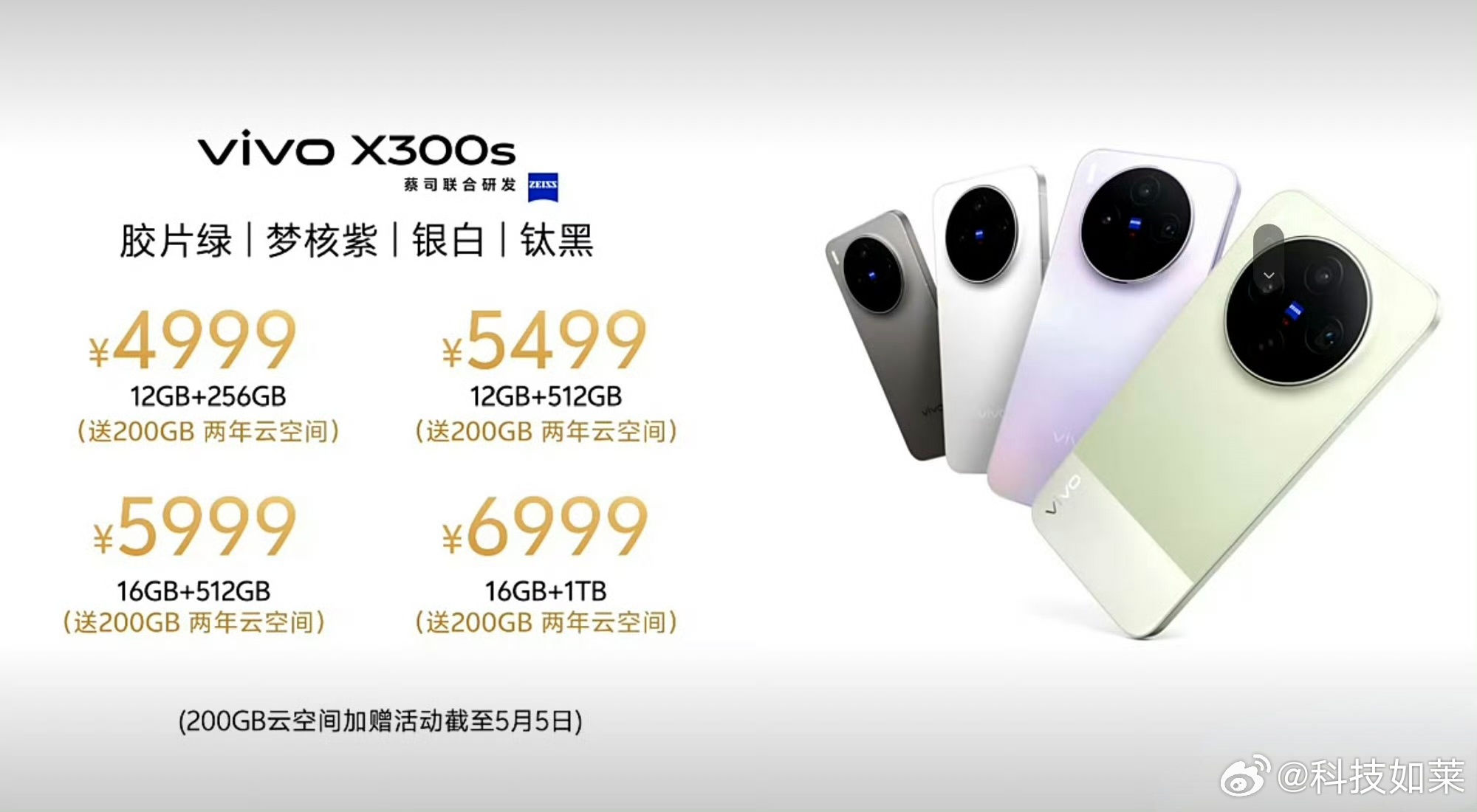 Vivo X300s起售价4999元起;Vivo X300 UItra起售价69