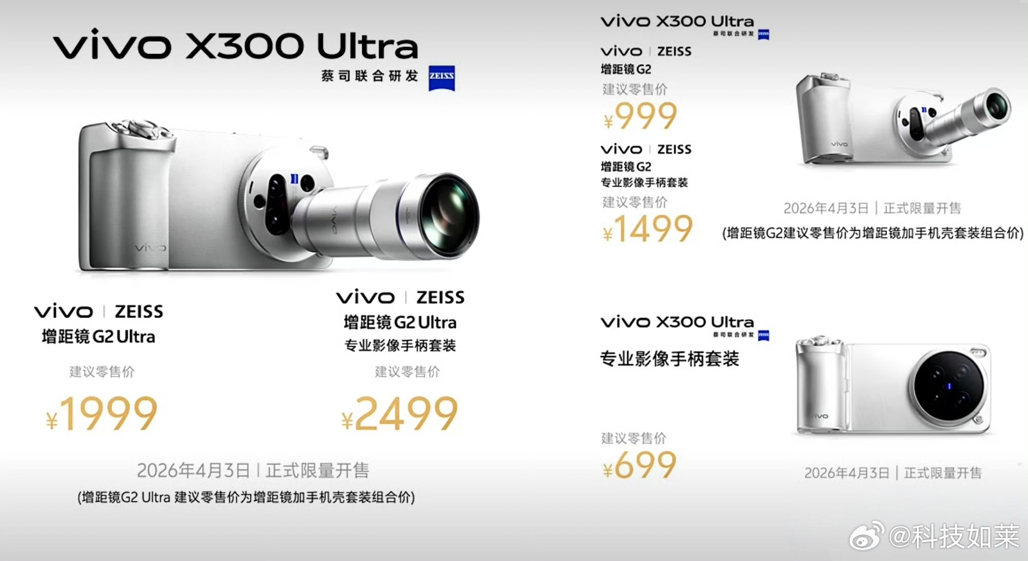Vivo X300s起售价4999元起;Vivo X300 UItra起售价6999元起,还有摄影师套装7999/11999,冲吗